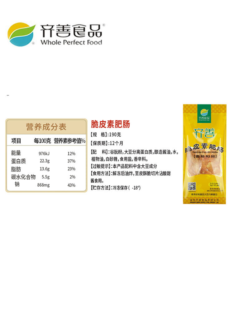 淘宝【秀子】齐善素食脆皮肥肠素肠佛家仿真人造肉素肥肠大肠豆制品