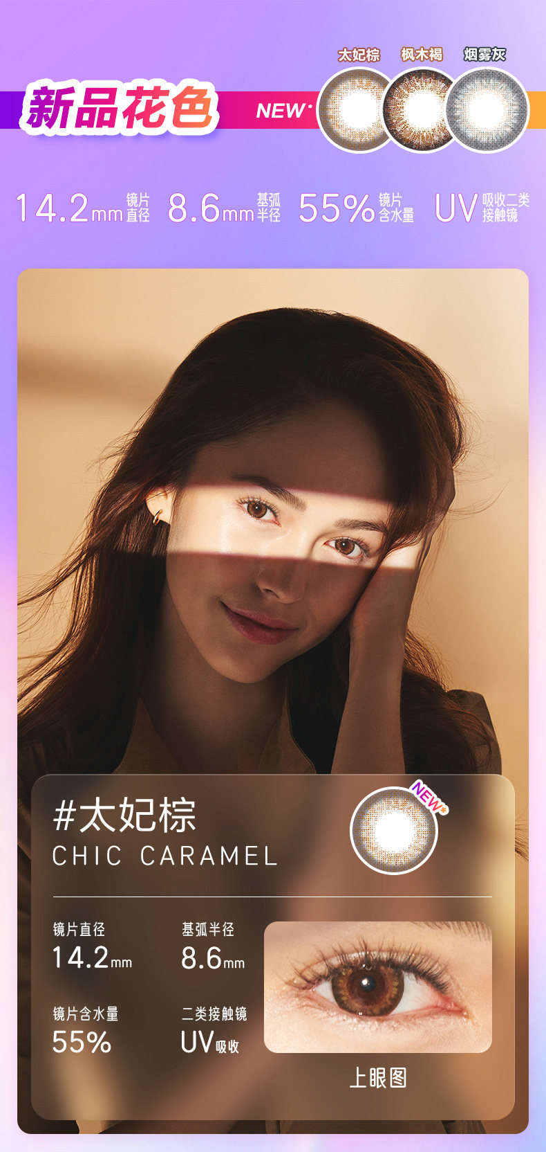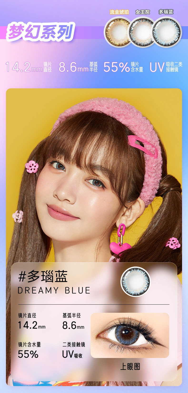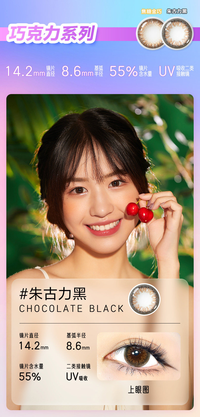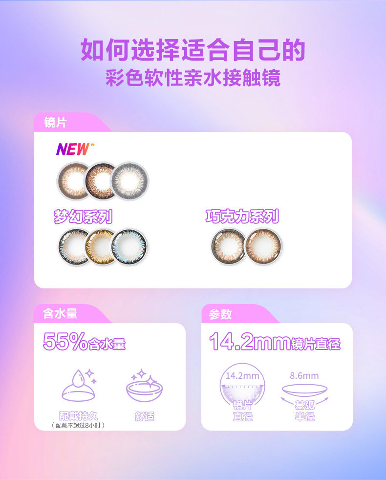 睛彩cc系列(梦幻系列&巧克力系列)韩国产:直径14.2mm 着色直径13.2mm