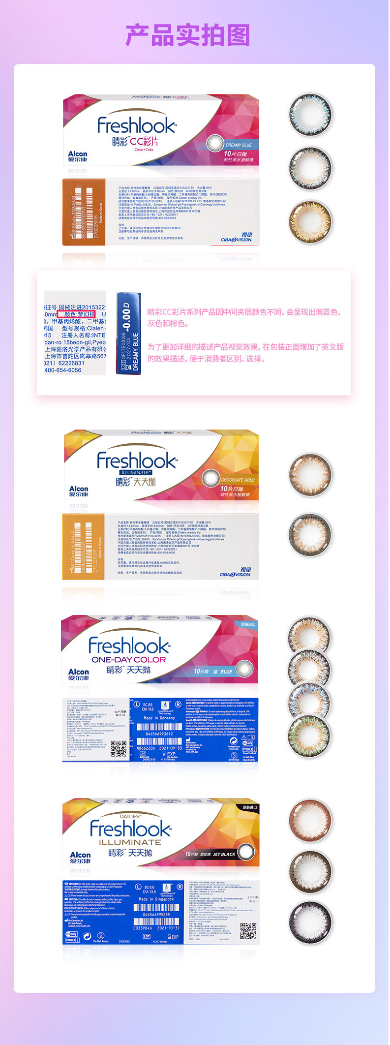 睛彩系列(多彩系列&星绽系列)德国产:直径13.8mm 着色直径12.6mm