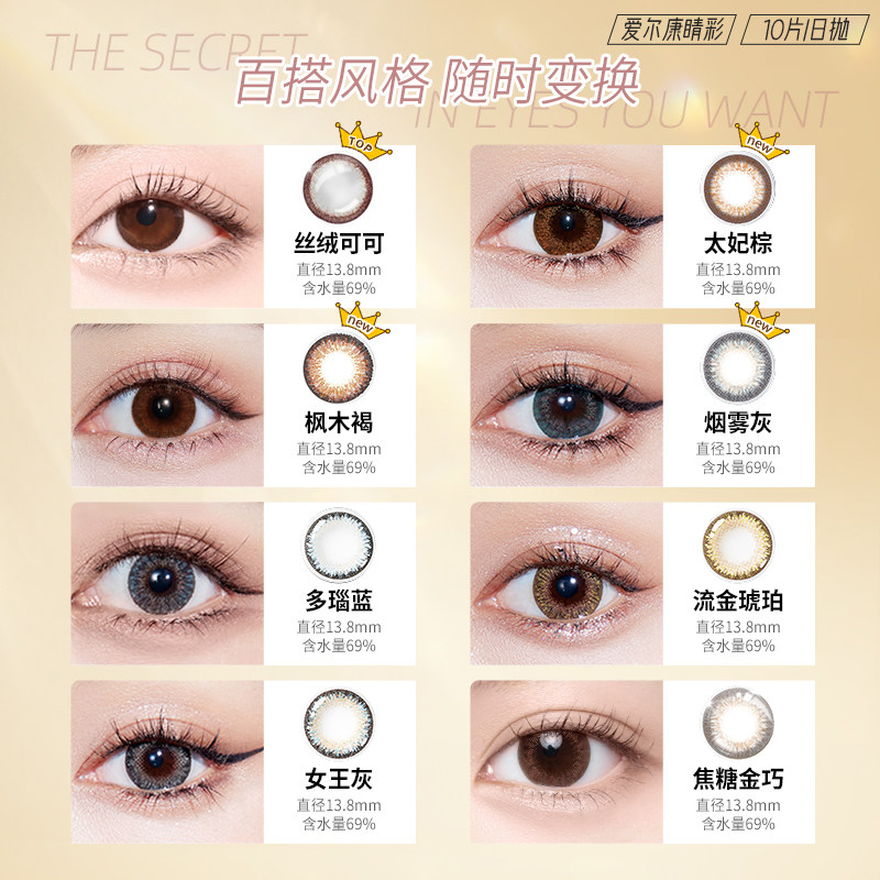 淘宝爱尔康美瞳日抛10片装视康freshlook大小直径睛彩13.8mm隐形眼镜