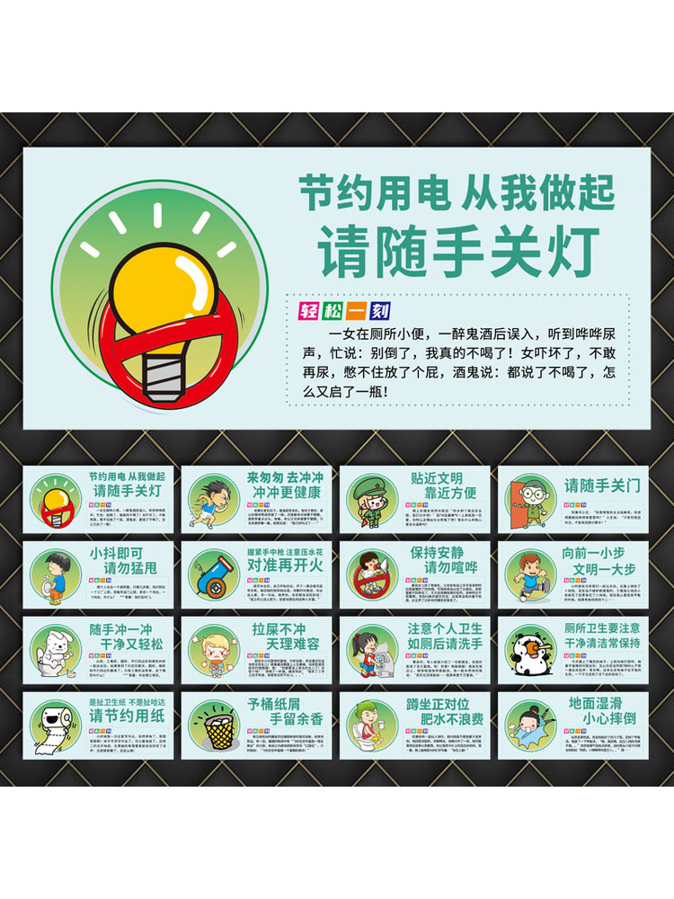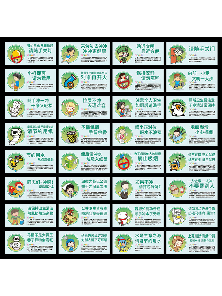 淘宝厕所文化标语卫生间节约用水用纸文明如厕标志标识指示贴纸TKP116