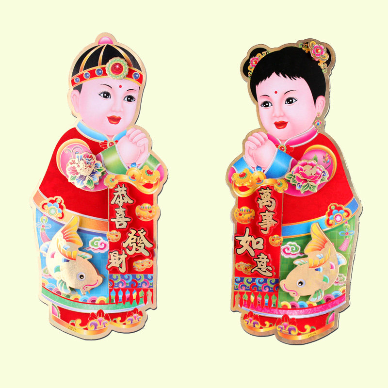 淘宝金童玉女立体年画 对联春联 春节用品 门贴门画贴纸门心 年货特价