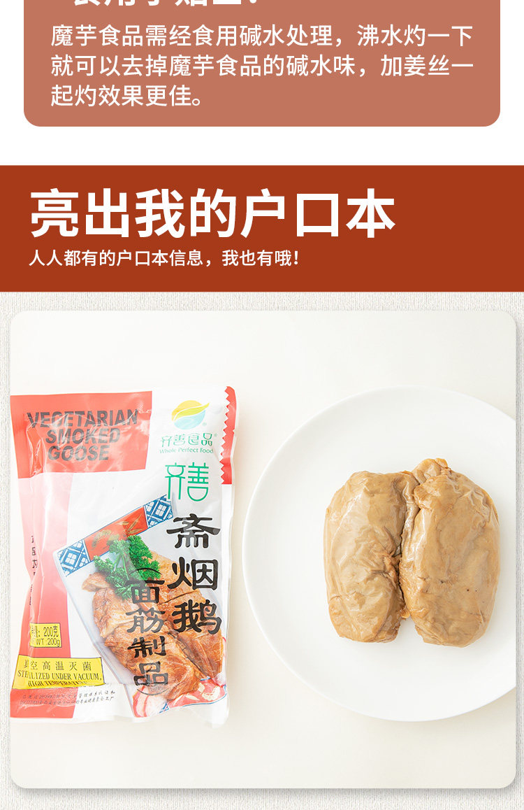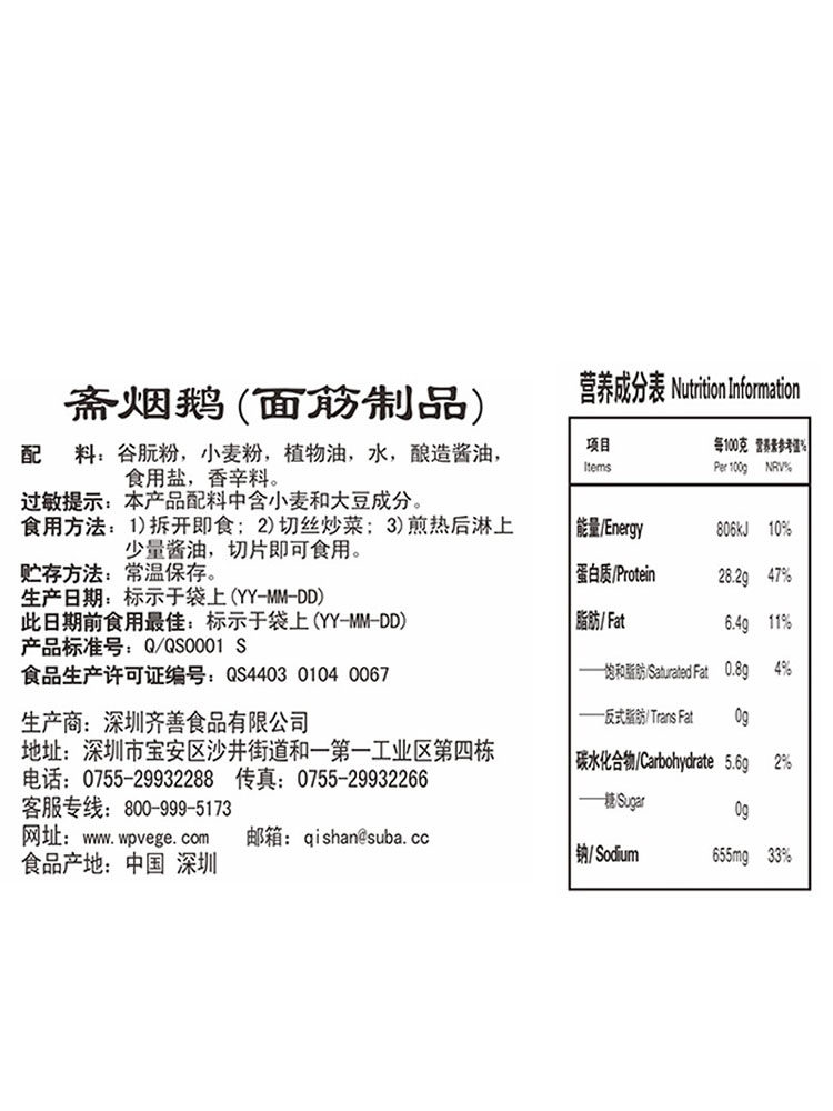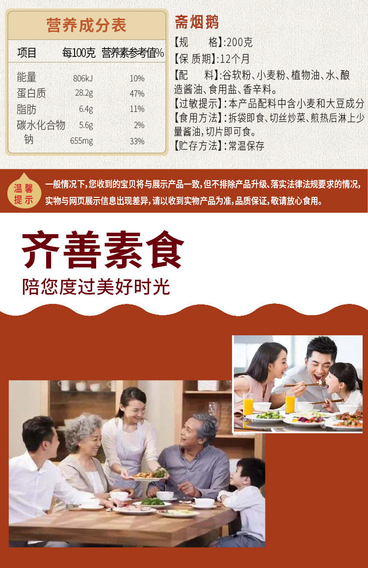 淘宝秀子齐善素食斋烟鹅 200g仿荤食品面筋素食斋菜素菜大豆蛋白