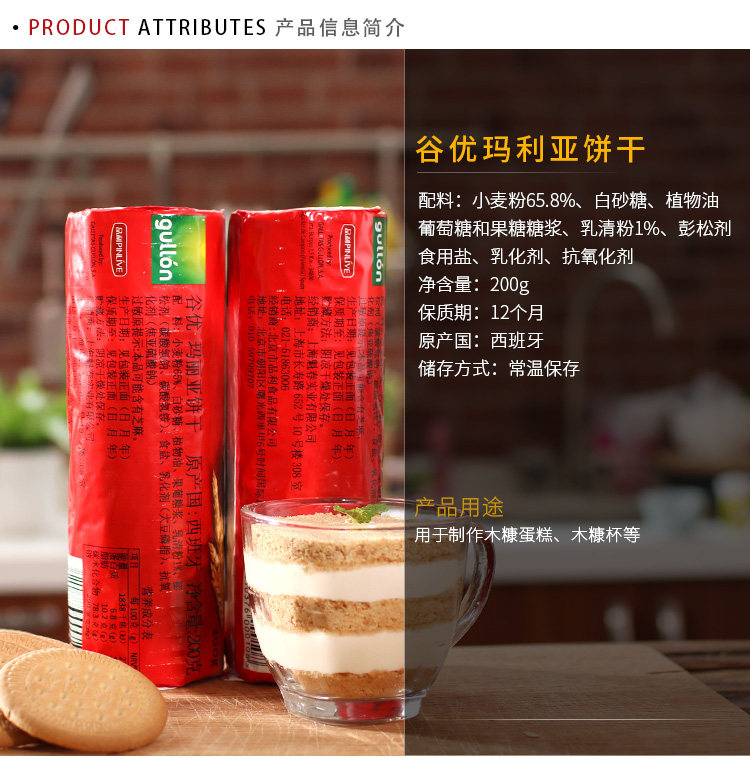 淘宝西班牙进口 谷优玛丽玛利亚饼干200g 雪花酥木糠布丁芝士蛋糕原料