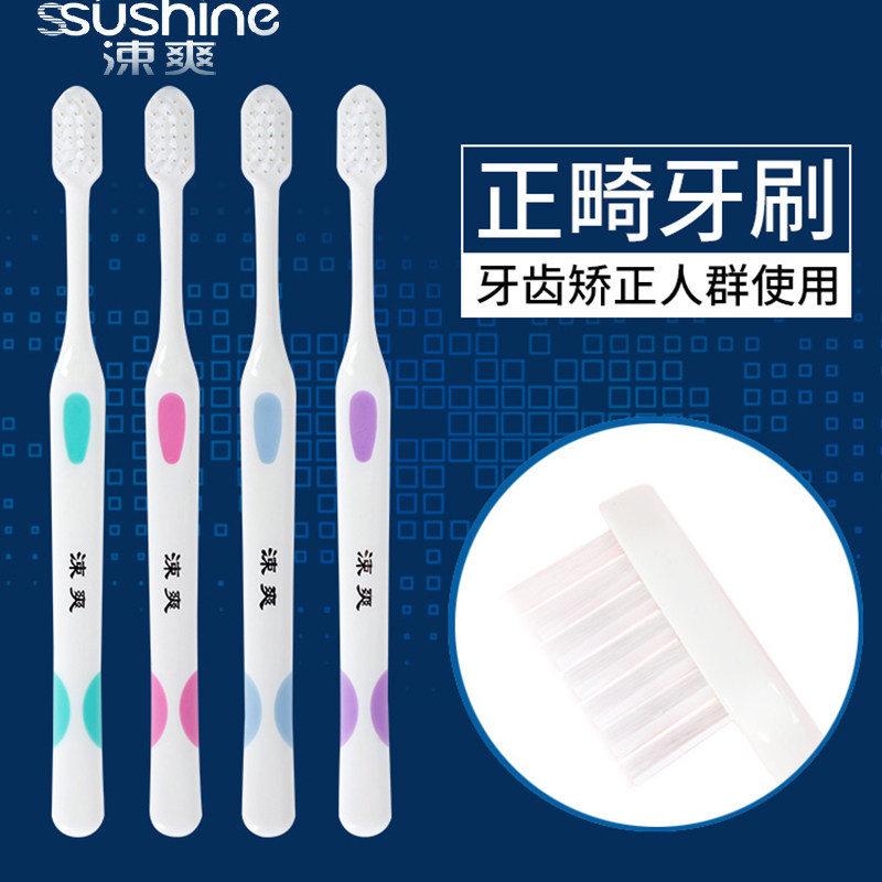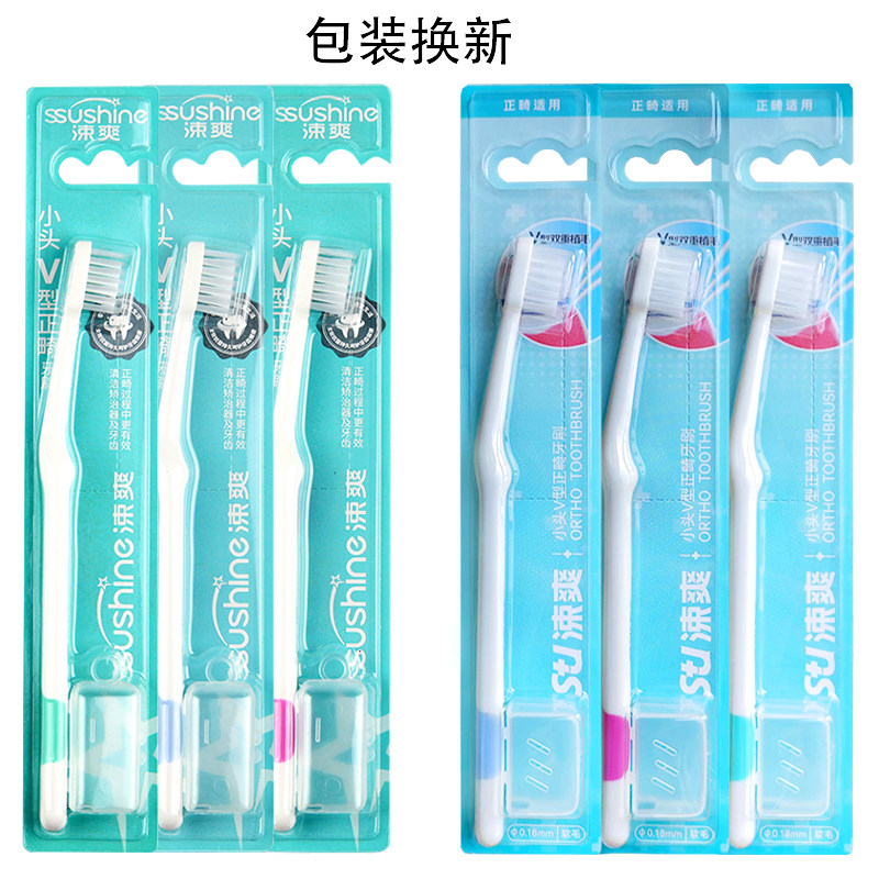 淘宝涑爽小头V型正畸牙刷 软毛带刷头保护帽校正牙齿带牙套正畸矫正期