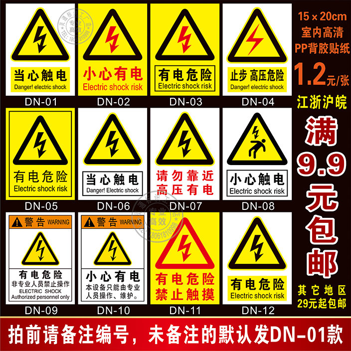 淘宝当心触电小心有电有电危险止步高压危险标识贴警示贴纸安全标识牌