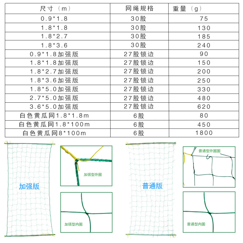 0.9*1.8 1.8*1.8 1.8*2.7 1.8*3.6 1.8*0.9加强版 1.8*1.8加强版 1.8*2.7加强版 1.8*3.6加强版 1.8*5加强版 2.7*5加强版 3.6*5加强版 白色黄瓜网1.8*18M(网眼24*24cm) 白色黄瓜网1.8*100M(网眼24*24cm) 白色黄瓜网8*100M(网眼25*25cm) 请选择