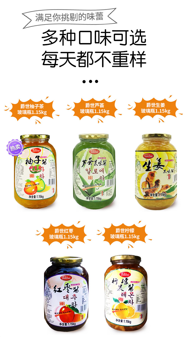 淘宝爵世蜂蜜柚子茶酱柠檬生姜芦荟红枣酱1150克果肉酱甜品面包点心馅