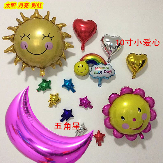 Taobao太阳36寸大月亮彩虹云朵气球生日背景墙铝膜箔宝宝婴儿装饰布置