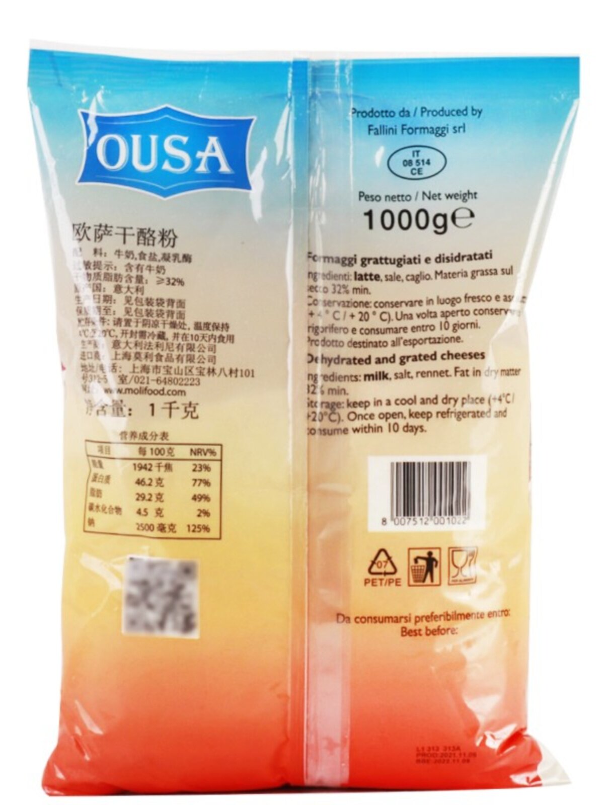 淘宝意大利进口欧萨芝士粉巴马臣奶酪粉卡萨干酪粉餐饮装1KG袋装 新货