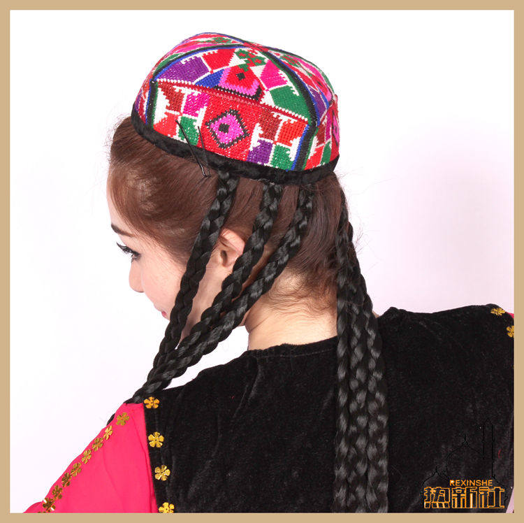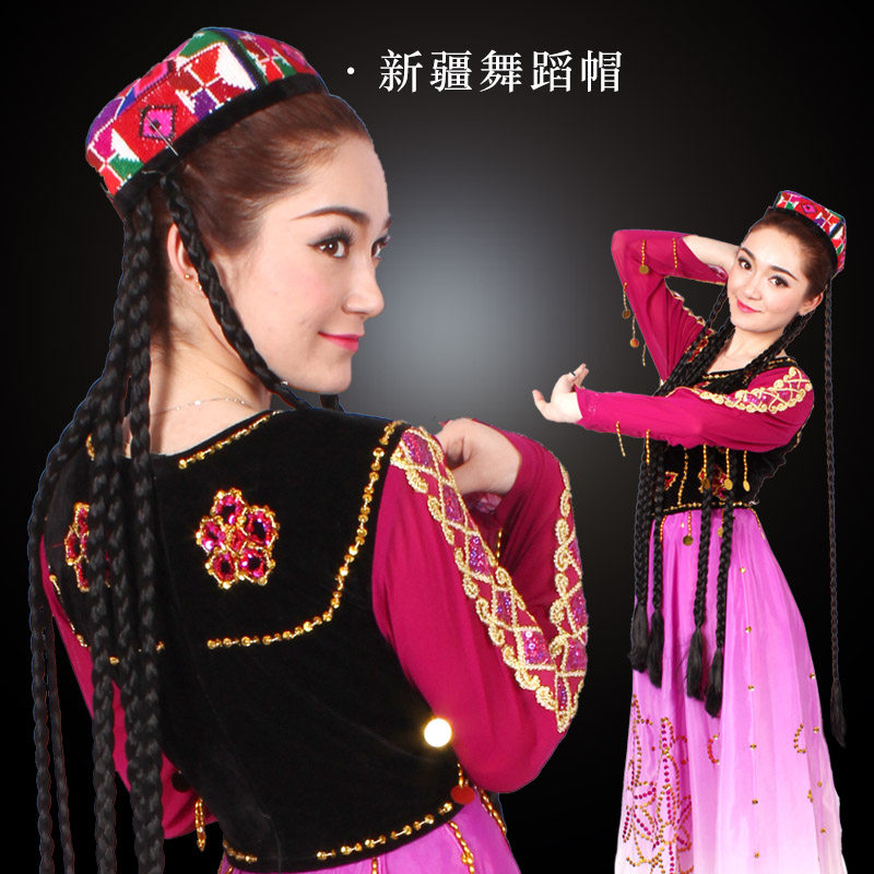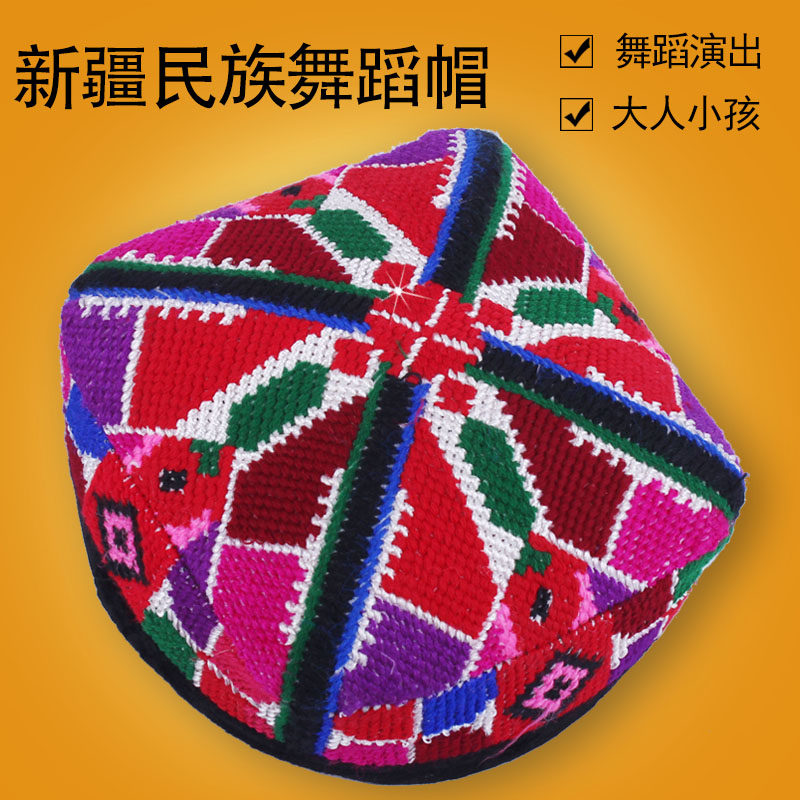 淘宝新疆舞蹈帽子维族小花帽少数民族舞蹈头饰帽子四角帽带辫子帽子