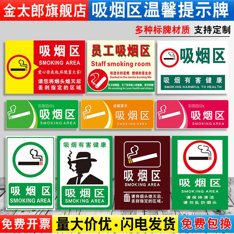 淘宝吸烟区标识牌员工禁止请勿严禁吸烟处灭烟处无烟区域禁烟办公室安全警示警告标志提示指示贴纸标牌墙贴定制ZT