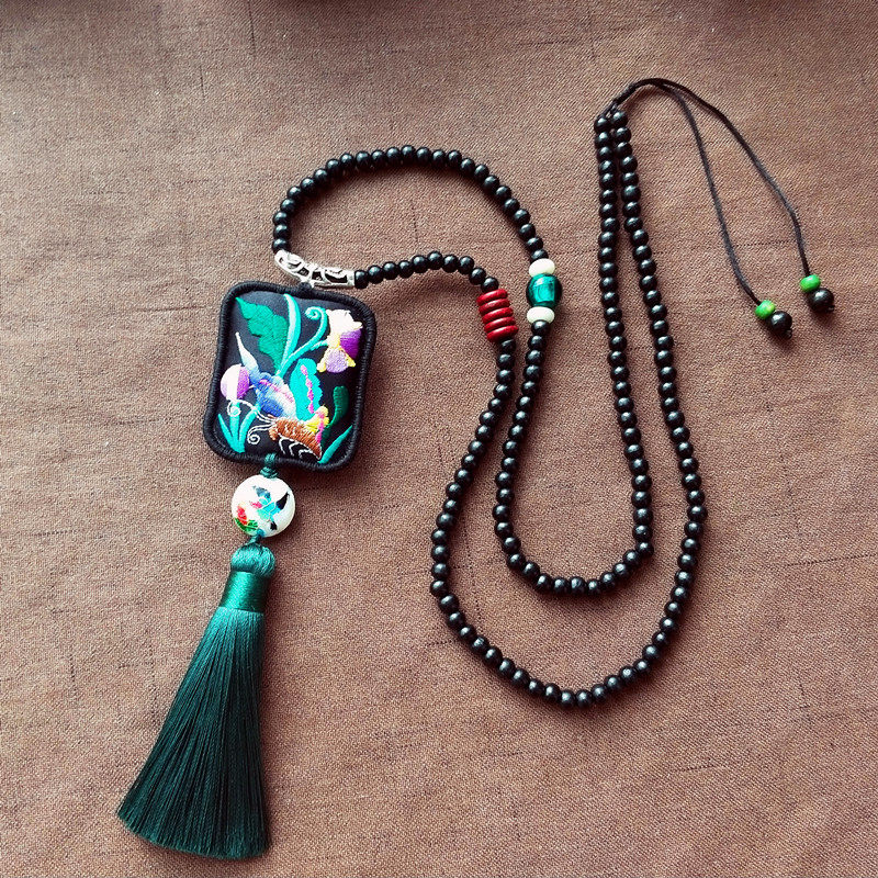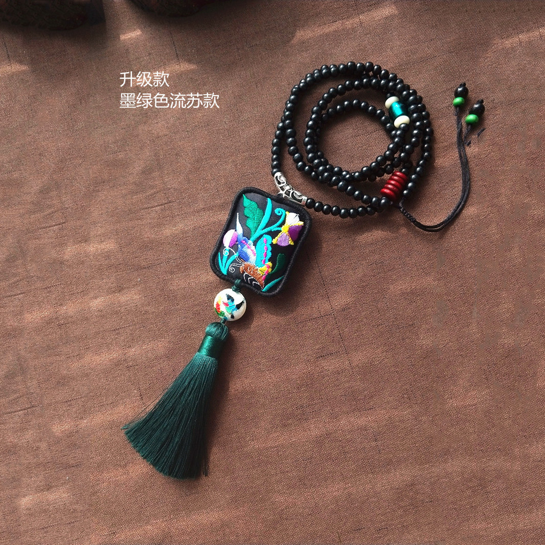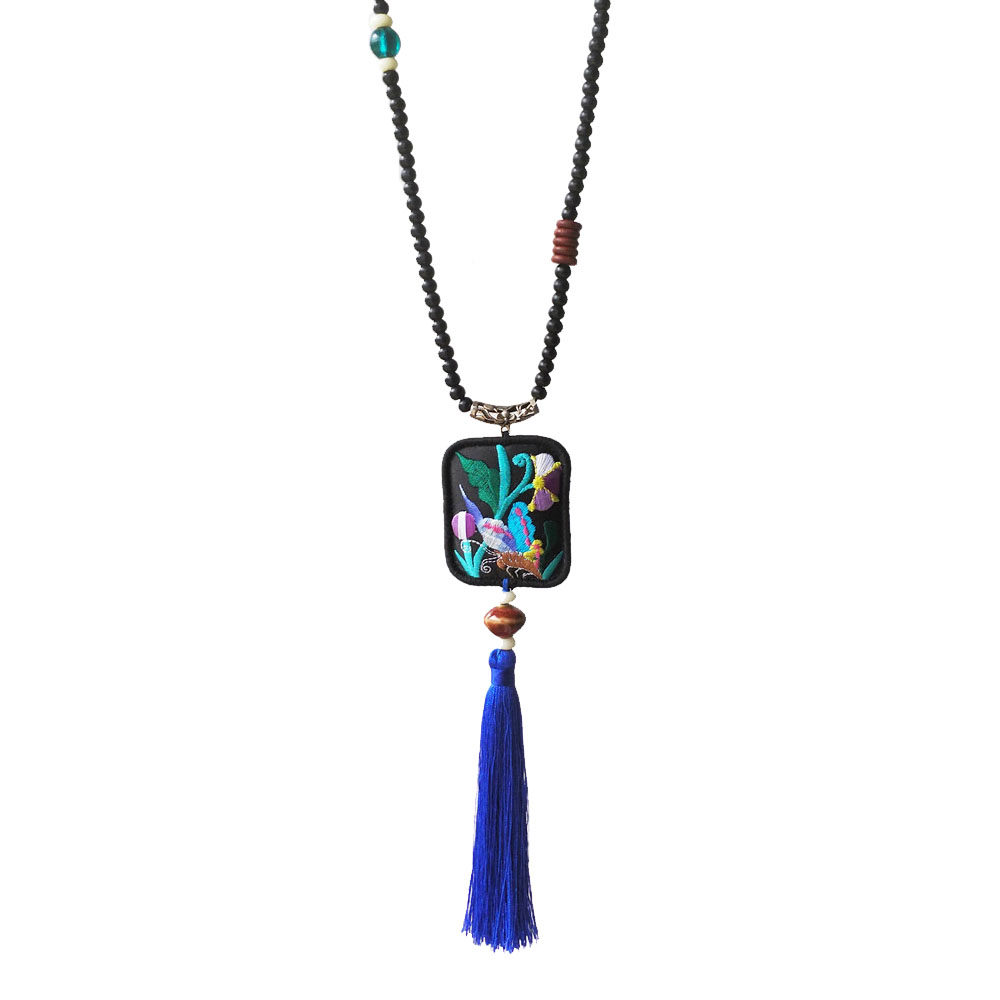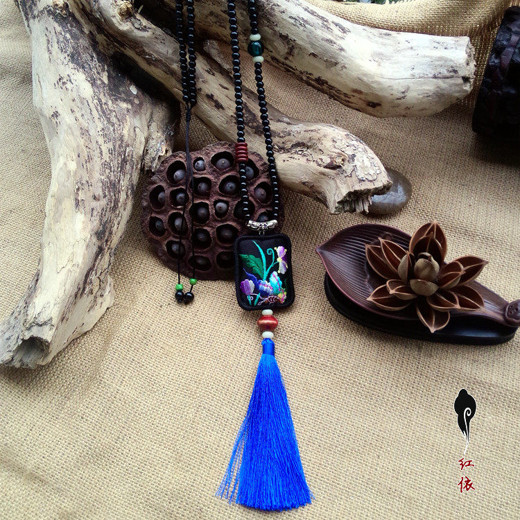 淘宝装饰品项链 女刺绣老绣片棉麻配饰长款挂饰流苏挂件 民族风毛衣链