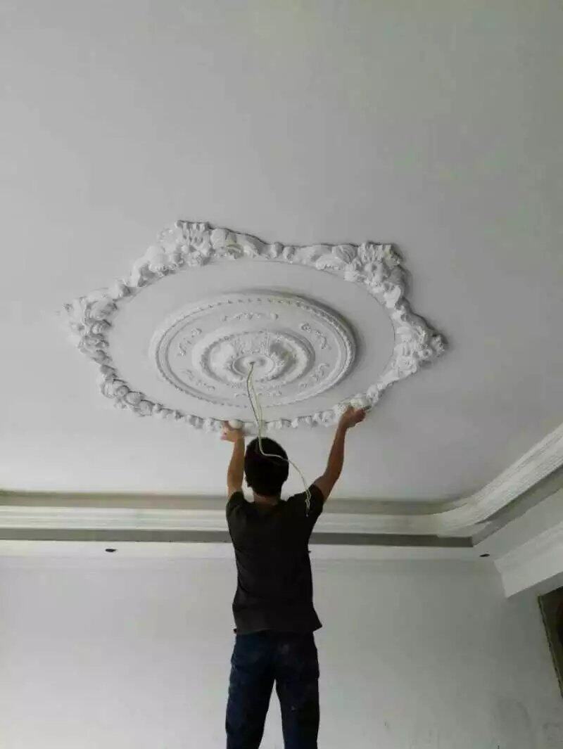 最佳安装时间是在腻子刮一遍后,油漆之前安装,用气枪钉订上去或者石膏粘粉粘上去都可以。石膏粘粉(粘合剂)安装方法:石膏沾合剂倒在地板上或者容器内,加水调成糊状(比例:粉3/水1)均匀沿着产品边沿涂一圈,贴在墙壁上,手按住几秒到十几秒左右固定了再松手,边沿处有缝隙的话可以用调成糊状的石膏粘粉补平,如有多余的用手或者铲刀抹掉,干后再刷一遍油漆就完美了。