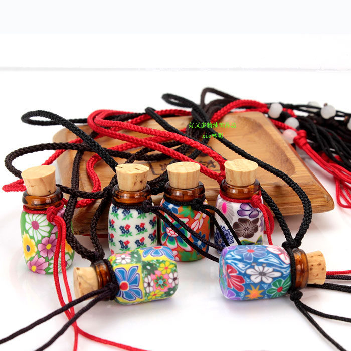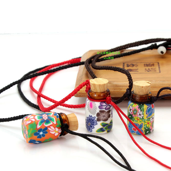 淘宝简约绳子款1毫升全软陶精油瓶项链吊坠 闻香香水瓶 精油项链饰品