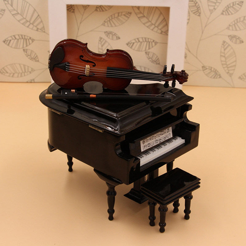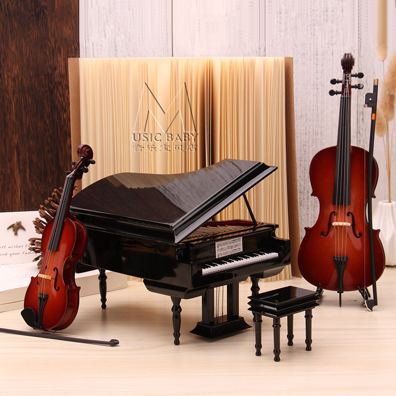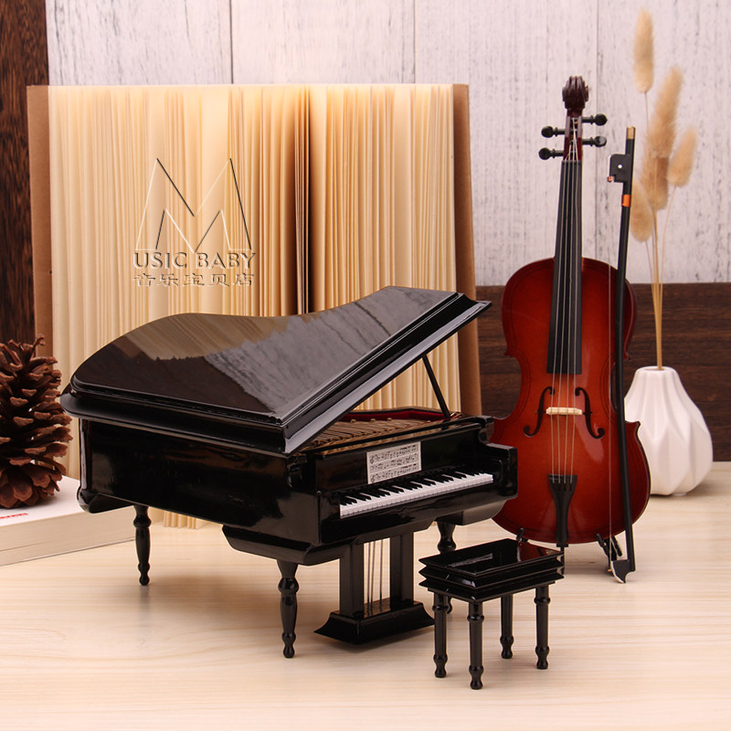 淘宝迷你钢琴音乐盒小提琴模型吉他大提摆件女朋友生日礼物竖琴八音盒