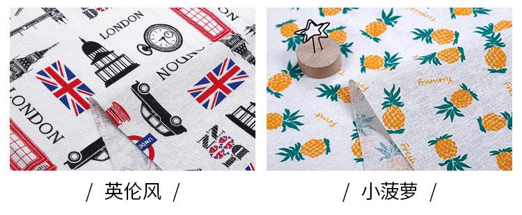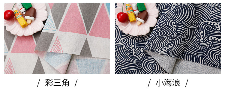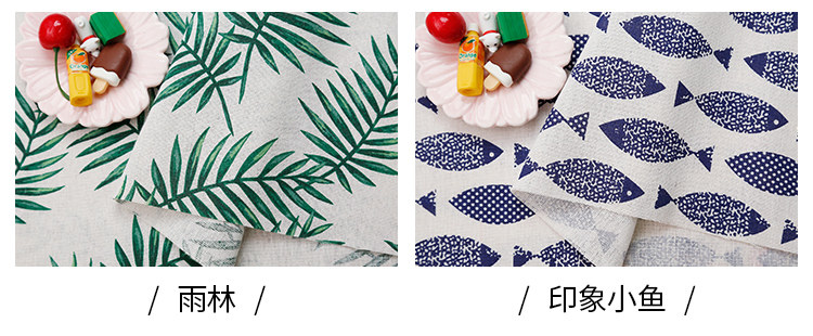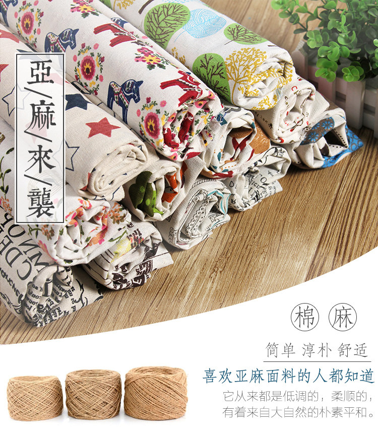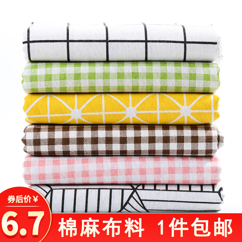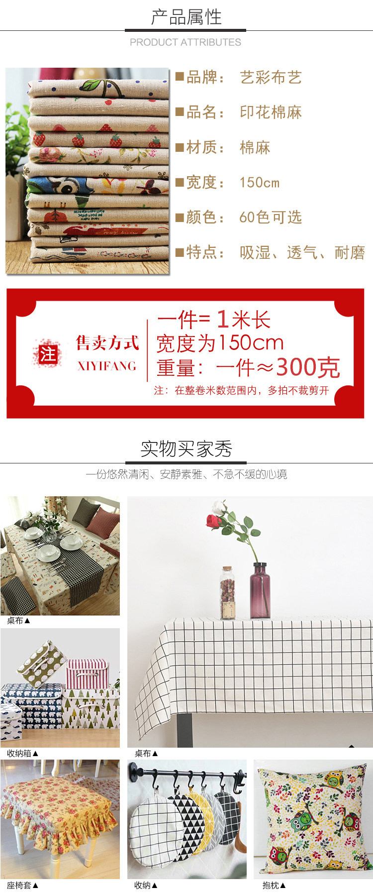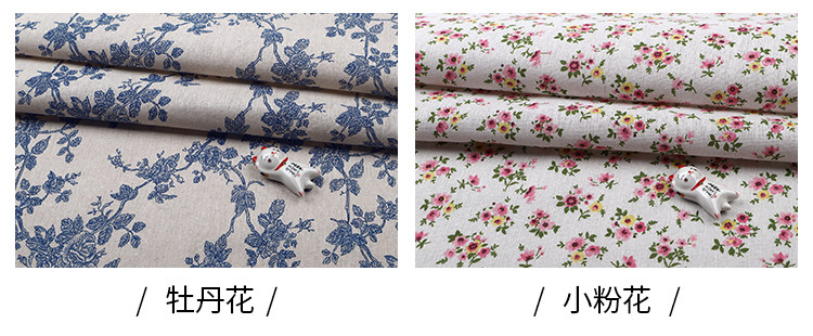 淘宝棉麻印花布料 沙发亚麻小碎花布diy粗麻布头北欧窗帘桌布格子布料
