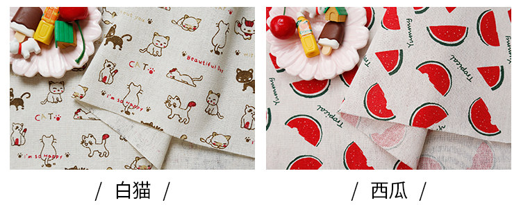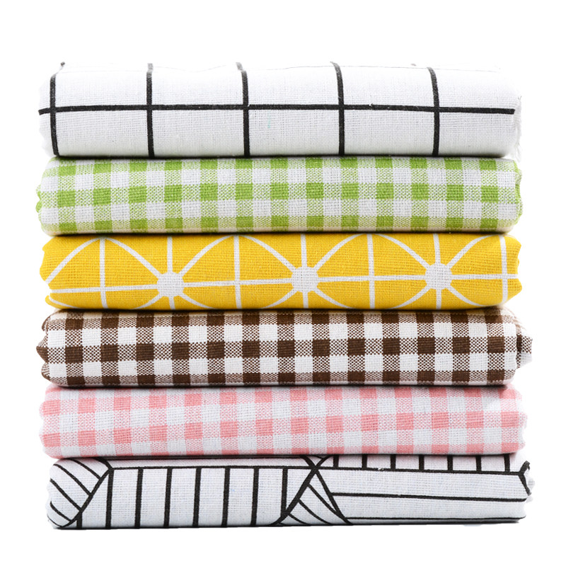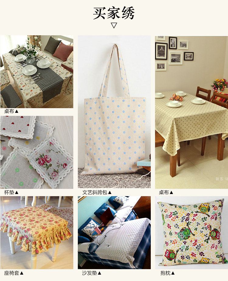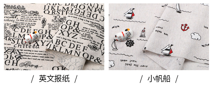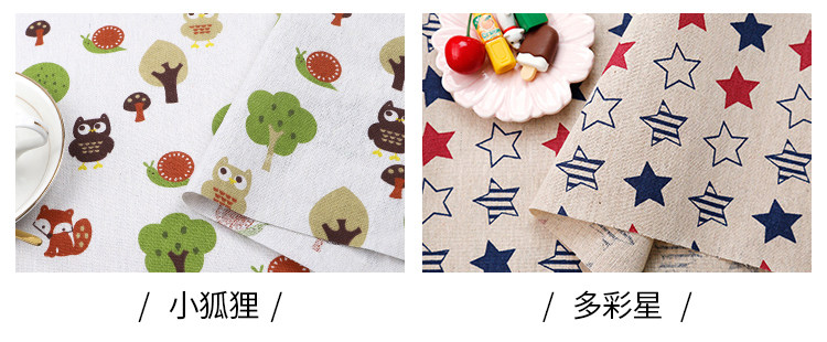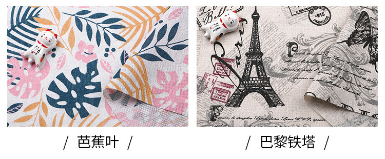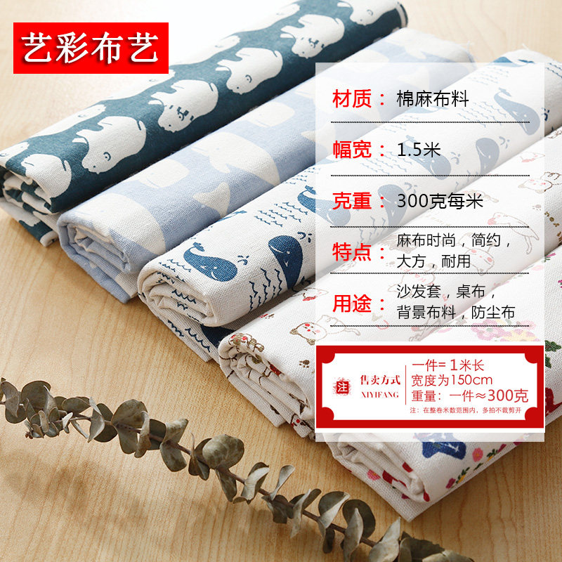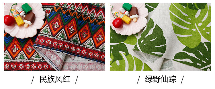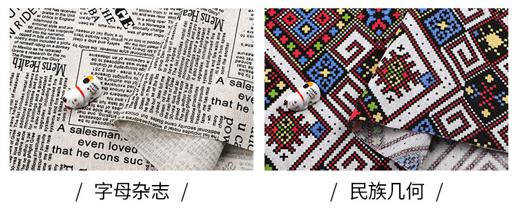 淘宝棉麻印花布料 沙发亚麻小碎花布diy粗麻布头北欧窗帘桌布格子布料