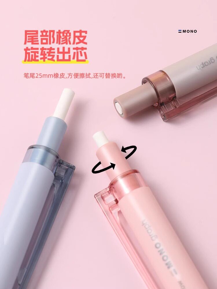淘宝日本tombow蜻蜓mono graph grip自动铅笔金属杆0.3/0.5摇摇铅笔小学生绘图绘画活动铅笔带橡皮素描不易断铅芯