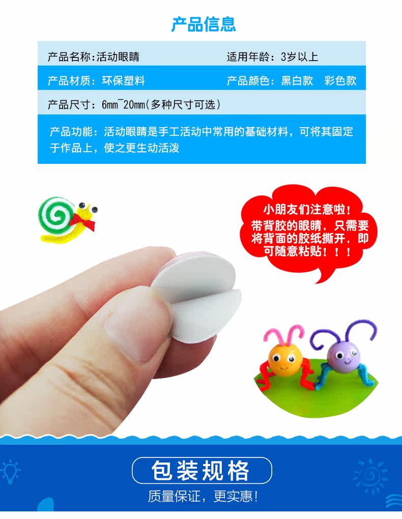 淘宝环保儿童益智玩具幼儿手工制作材料娃娃眼睛活动眼睛3D眼睛环保