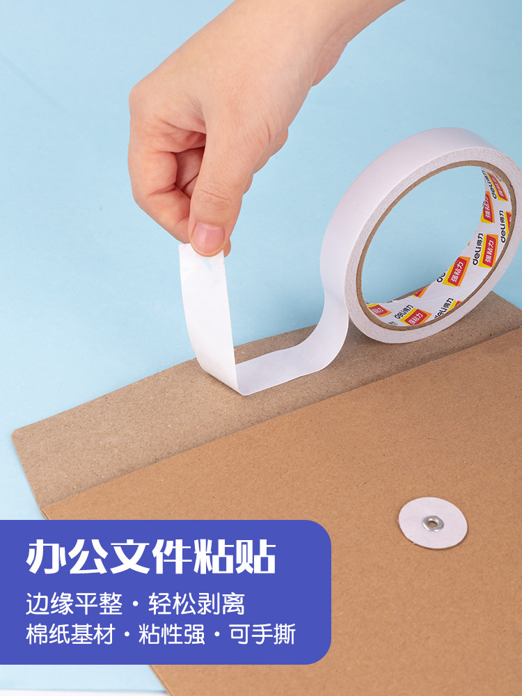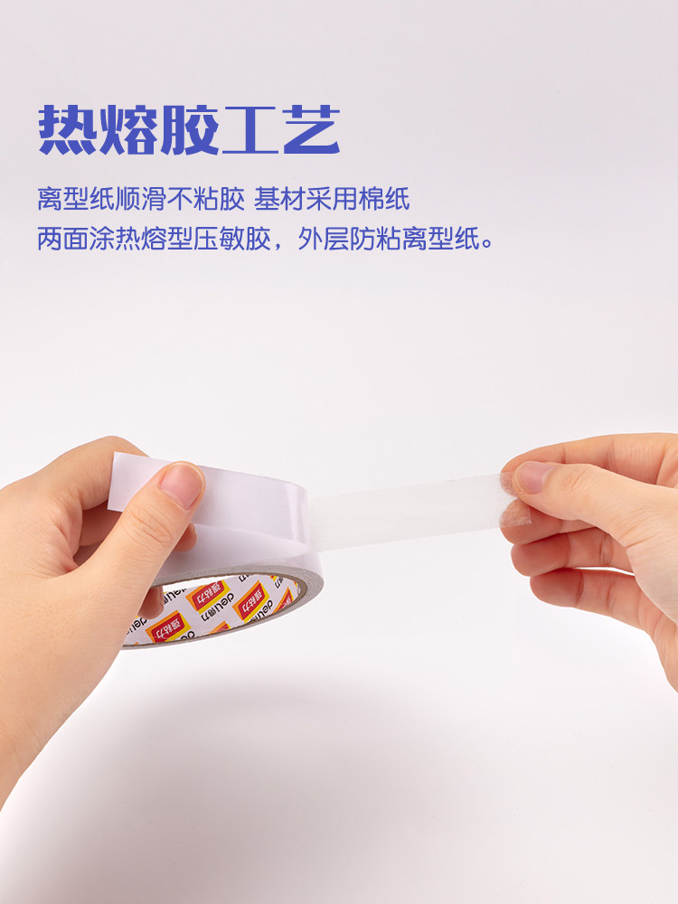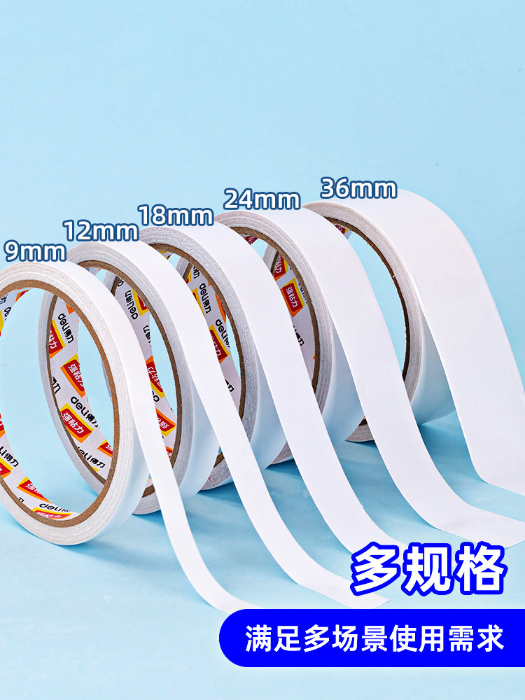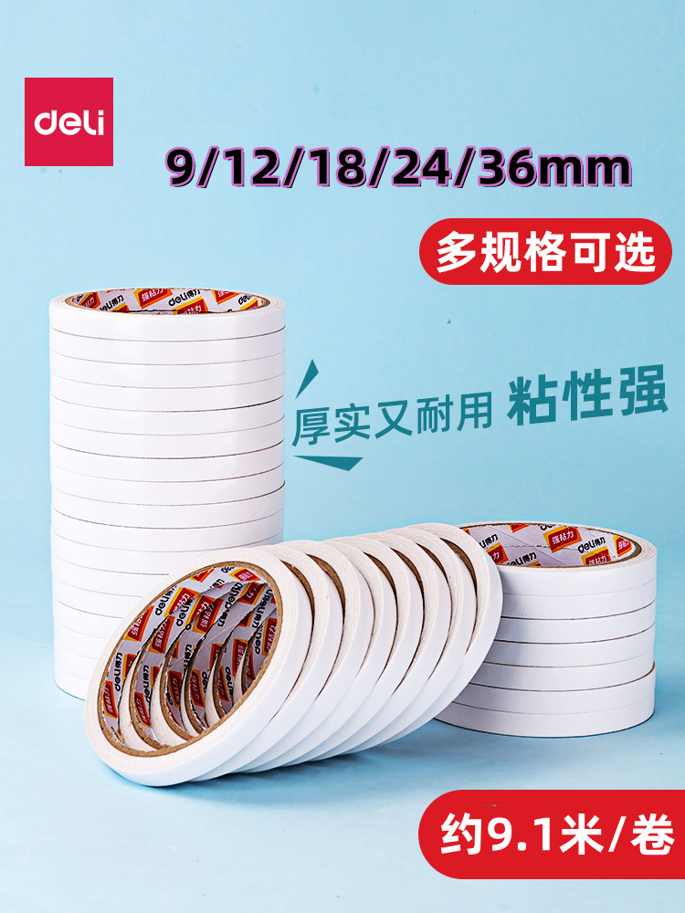 淘宝得力9mm热熔棉纸双面胶带 1.8cm宽胶纸强粘胶小2cm双面胶整条价文具双面胶两面胶棉纸双面粘力热熔棉纸