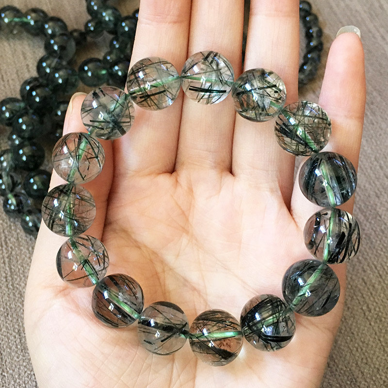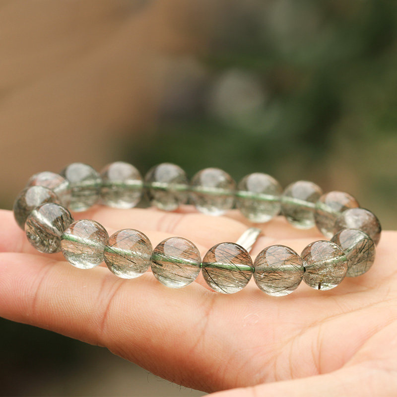 淘宝晶立方绿发晶手链顺发晶体透发丝多水晶收藏款男女单圈圆珠手串