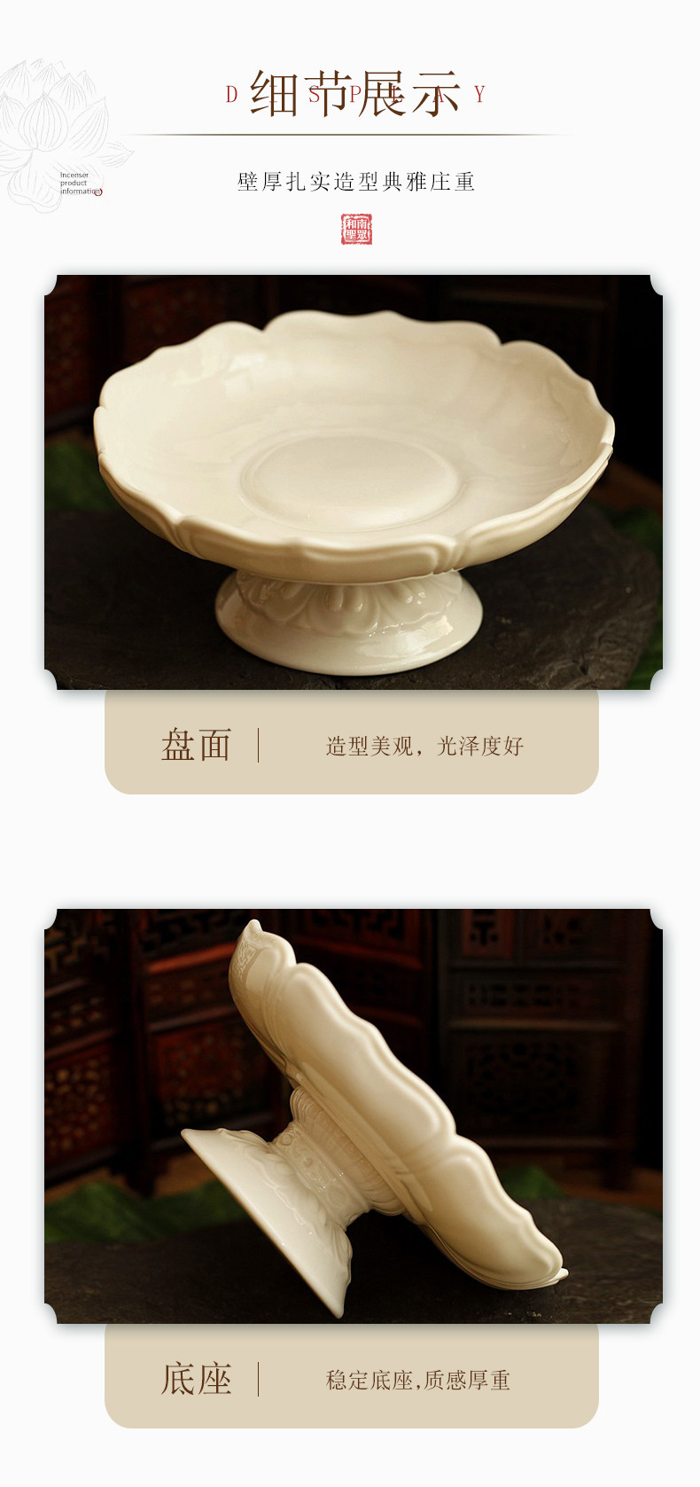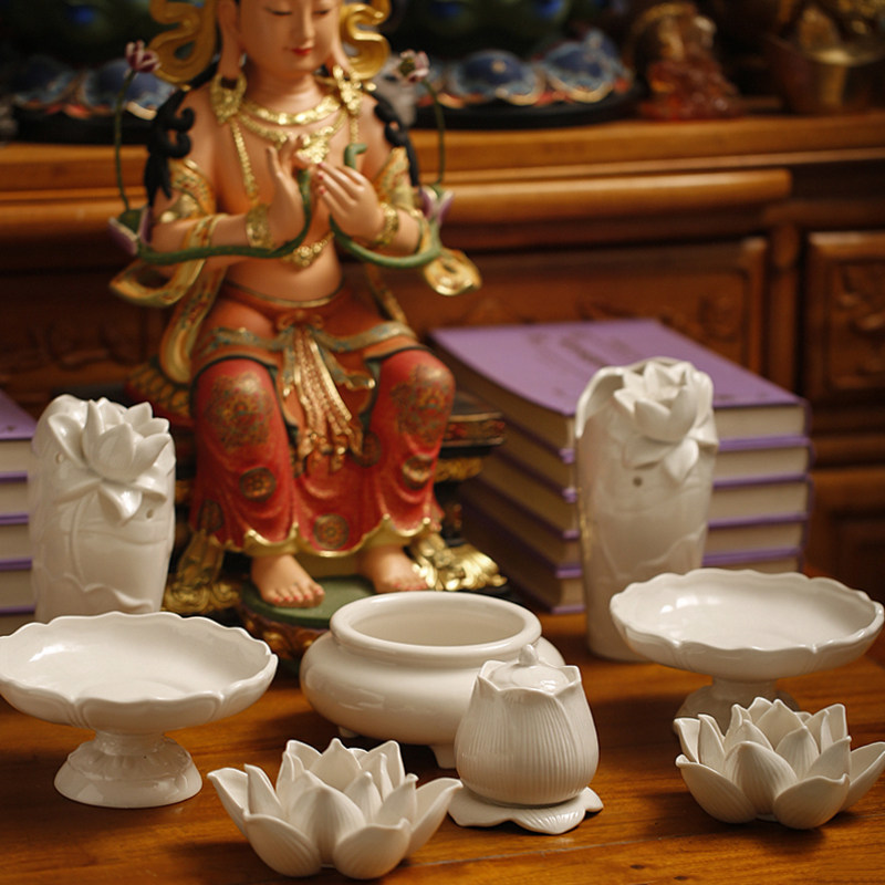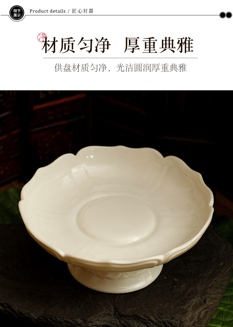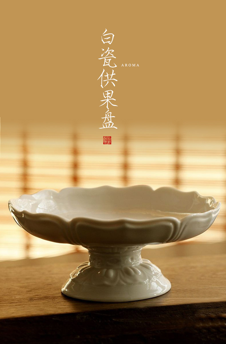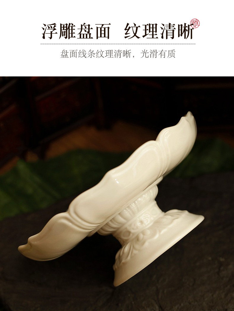 淘宝家用室内陶瓷水果盘佛堂供具供佛盘观音贡盘白瓷高脚莲花供果盘