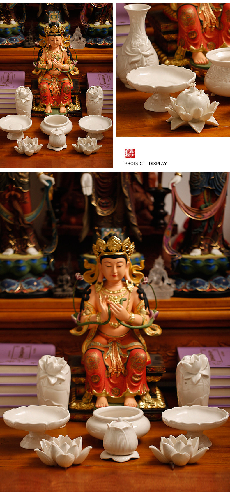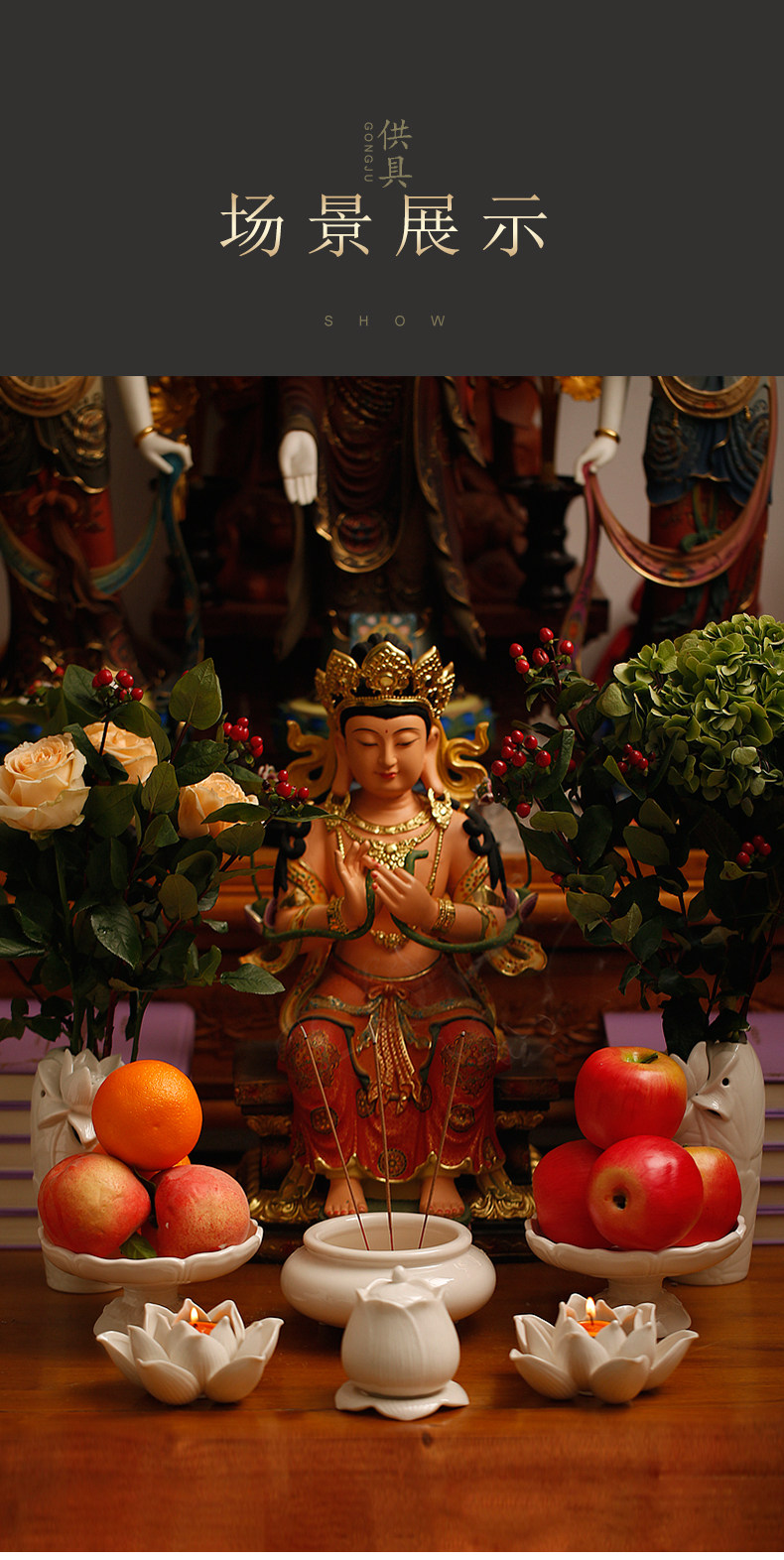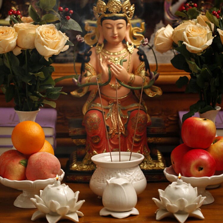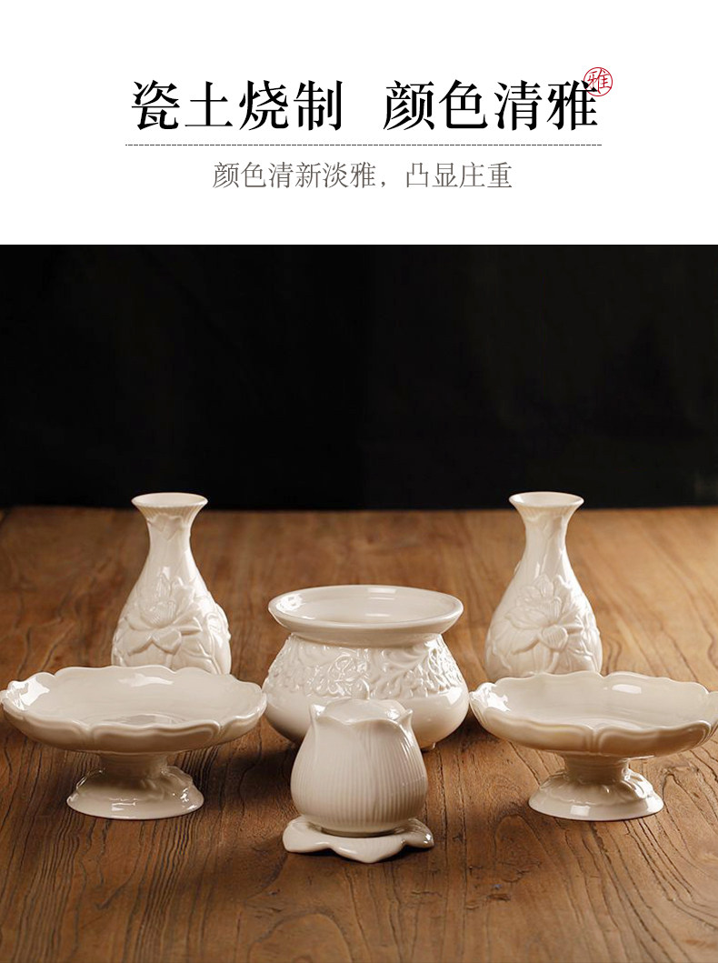 淘宝家用室内陶瓷水果盘佛堂供具供佛盘观音贡盘白瓷高脚莲花供果盘