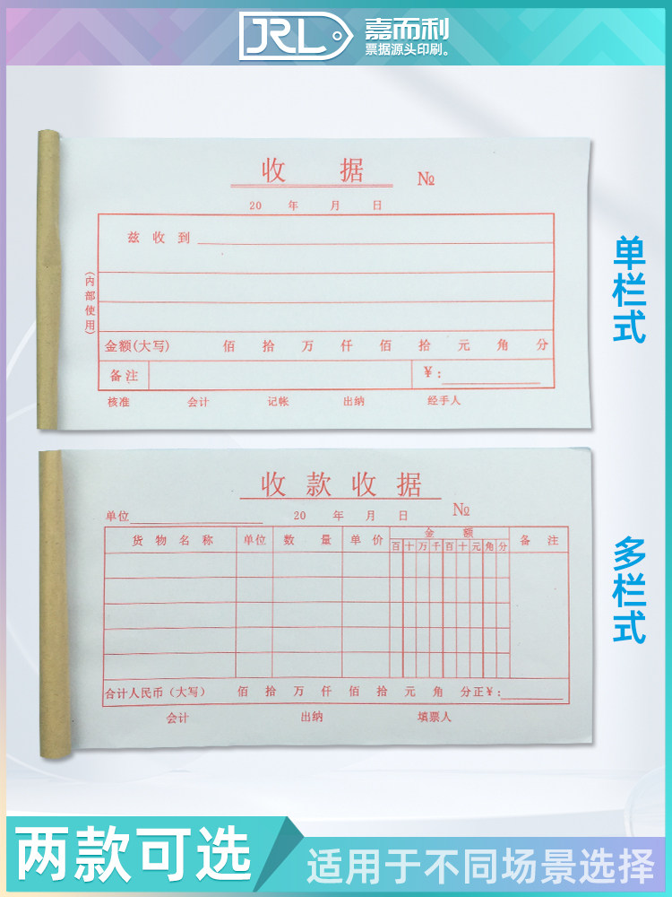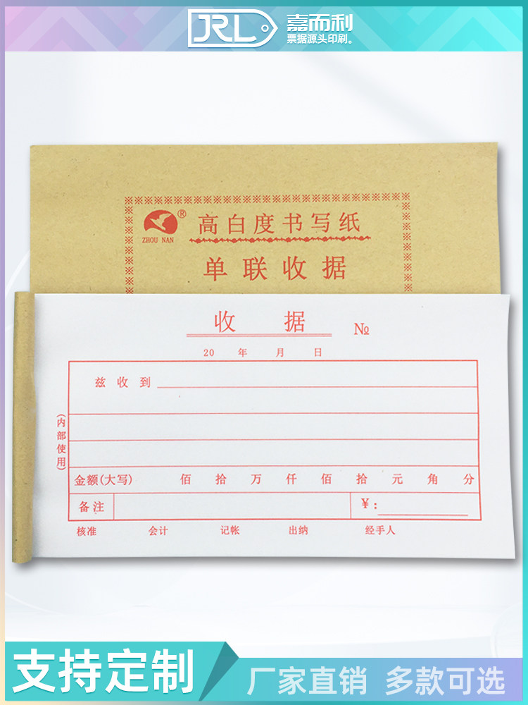 淘宝单联单栏收款收据定制印刷单张收据一联多栏收费单财务单据票据本