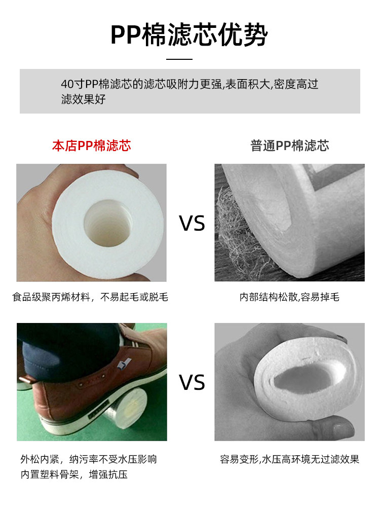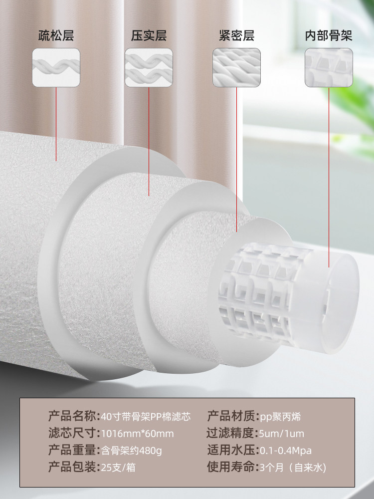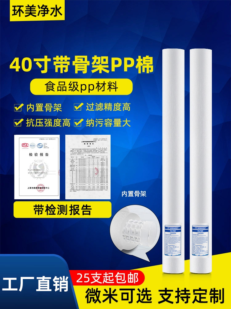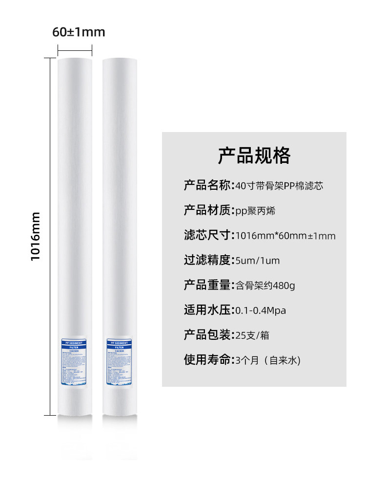 淘宝40寸PP棉滤芯带骨架商务纯水机净水器超长1/5微米PPF1000毫米也有