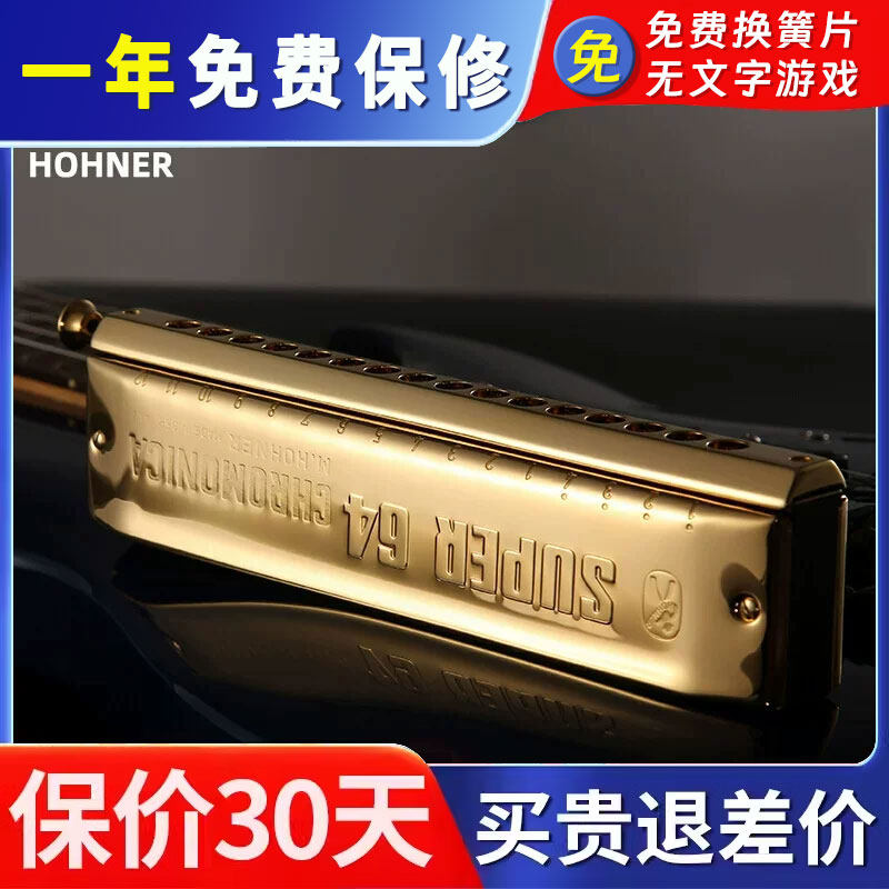 淘宝德国HOHNER金色16孔半音阶口琴Super64 Gold土豪金专业演奏初学款