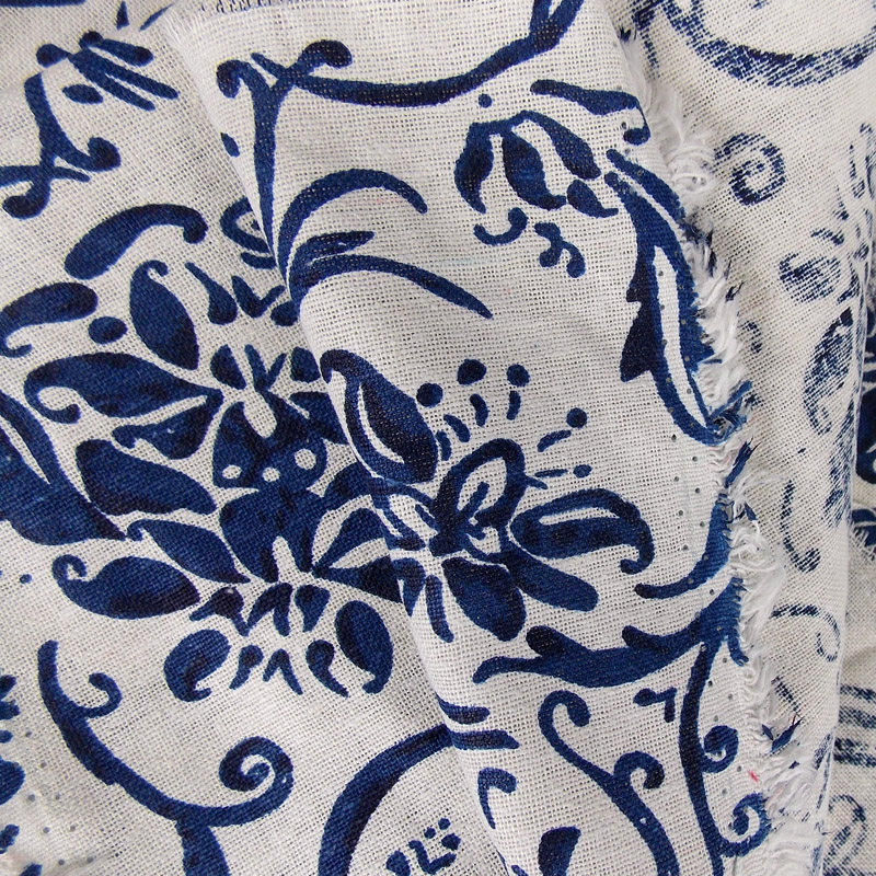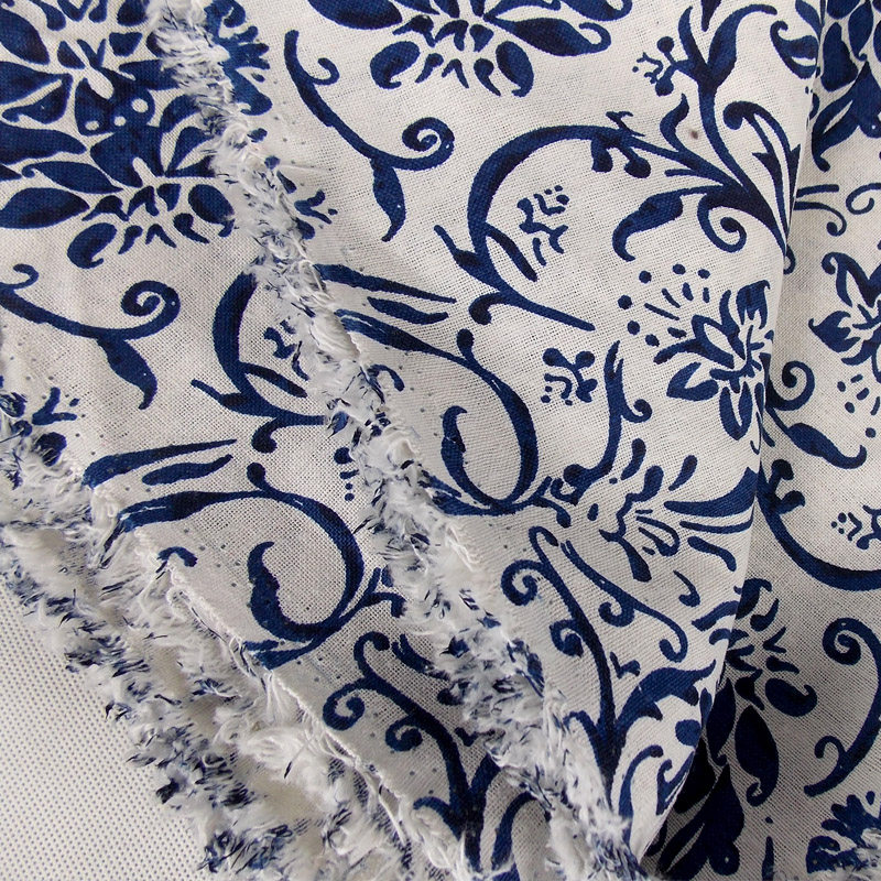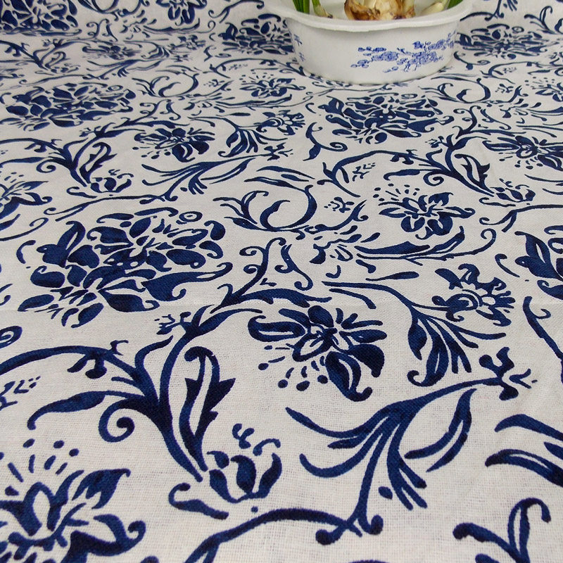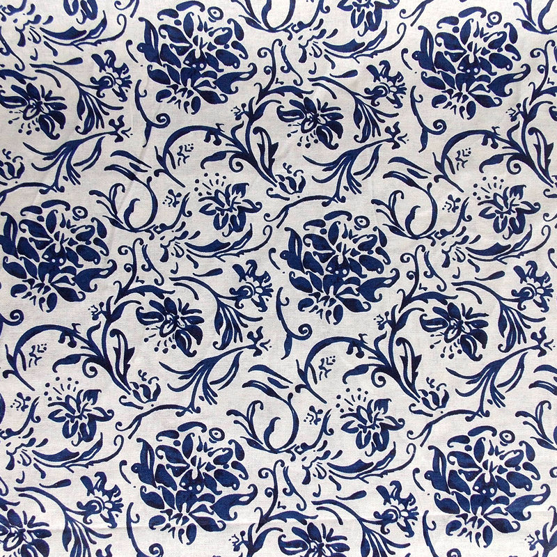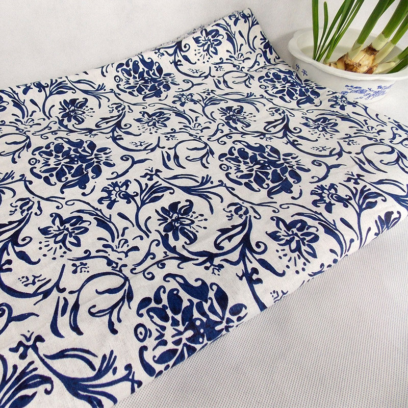 淘宝中国风棉麻印花布料青花瓷亚麻面料民族服装旗袍面料手工布料
