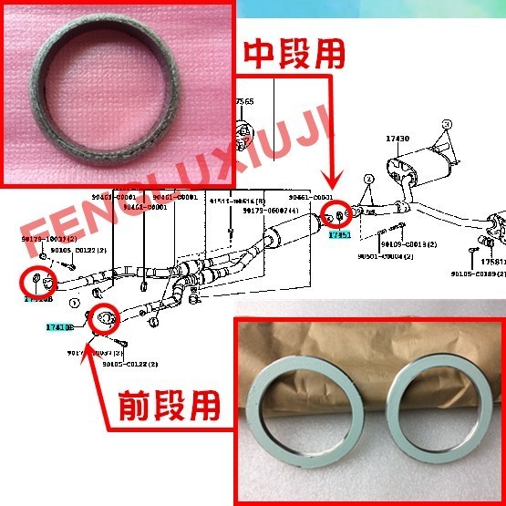 适用丰田锐志皇冠前段排气管垫后排气管密封垫原厂排气管垫片配件