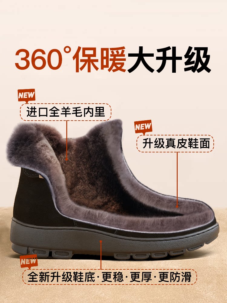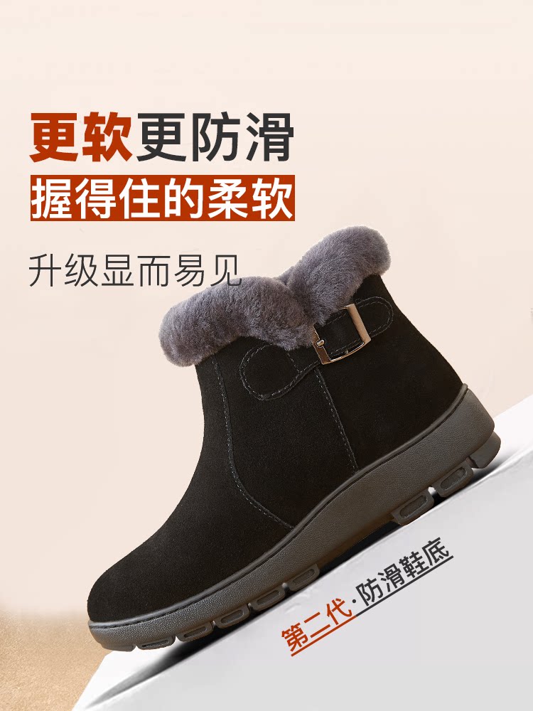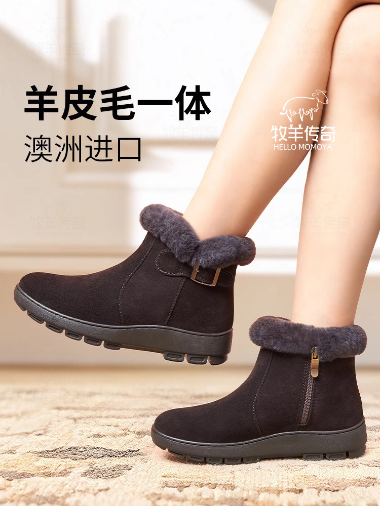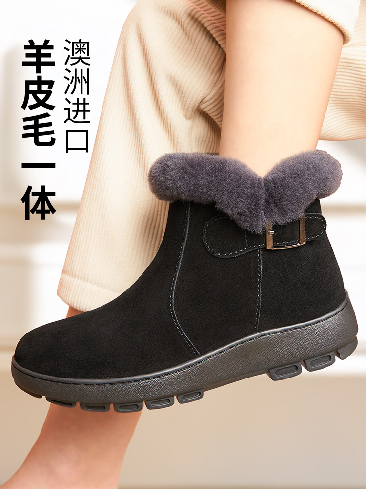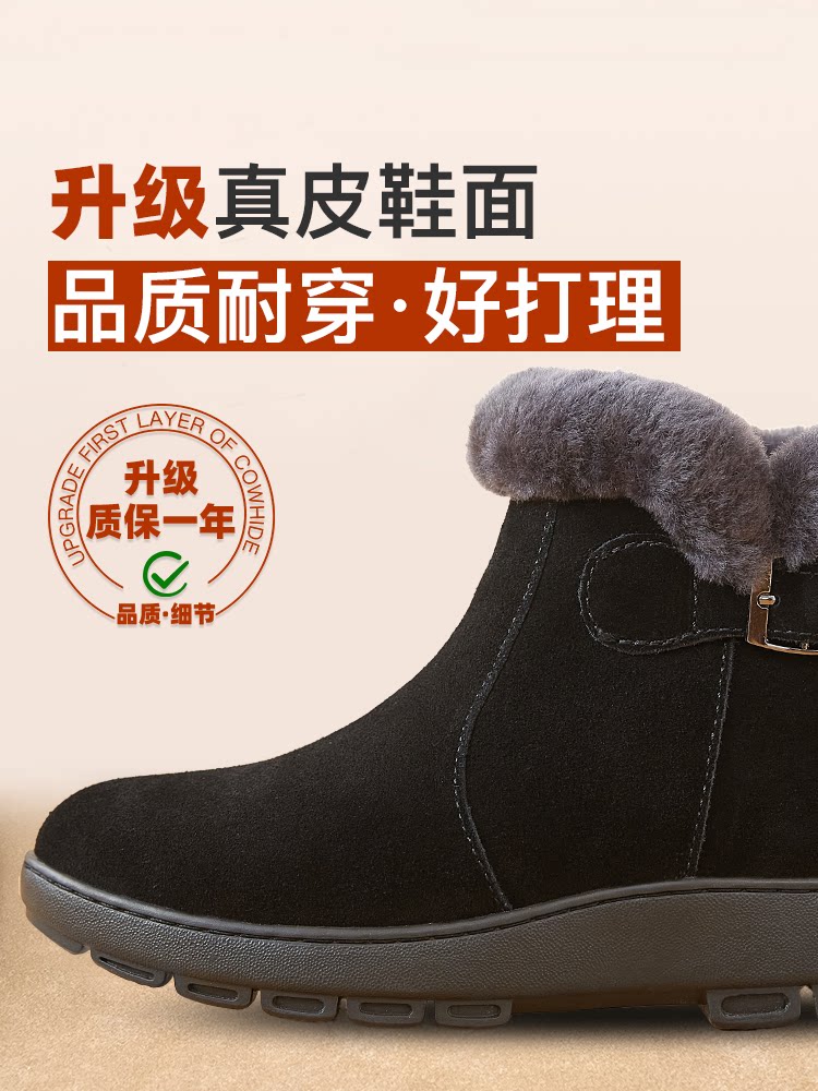 淘宝妈妈棉鞋雪地靴皮毛一体女鞋老人鞋冬季加绒加厚真皮羊毛棉靴冬鞋
