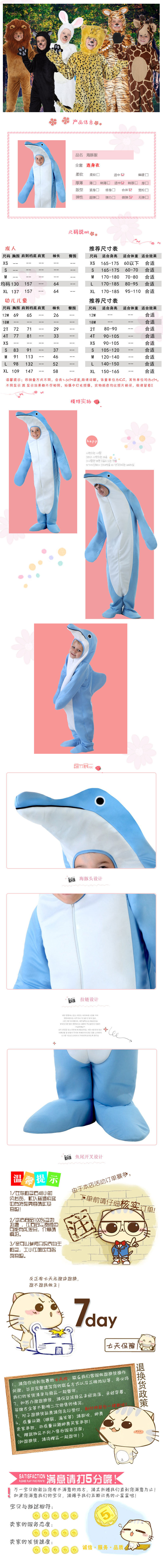 淘宝cos万圣节儿童节学校表演海洋动物服装成人儿童海豚演出服亲子装