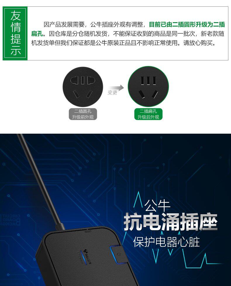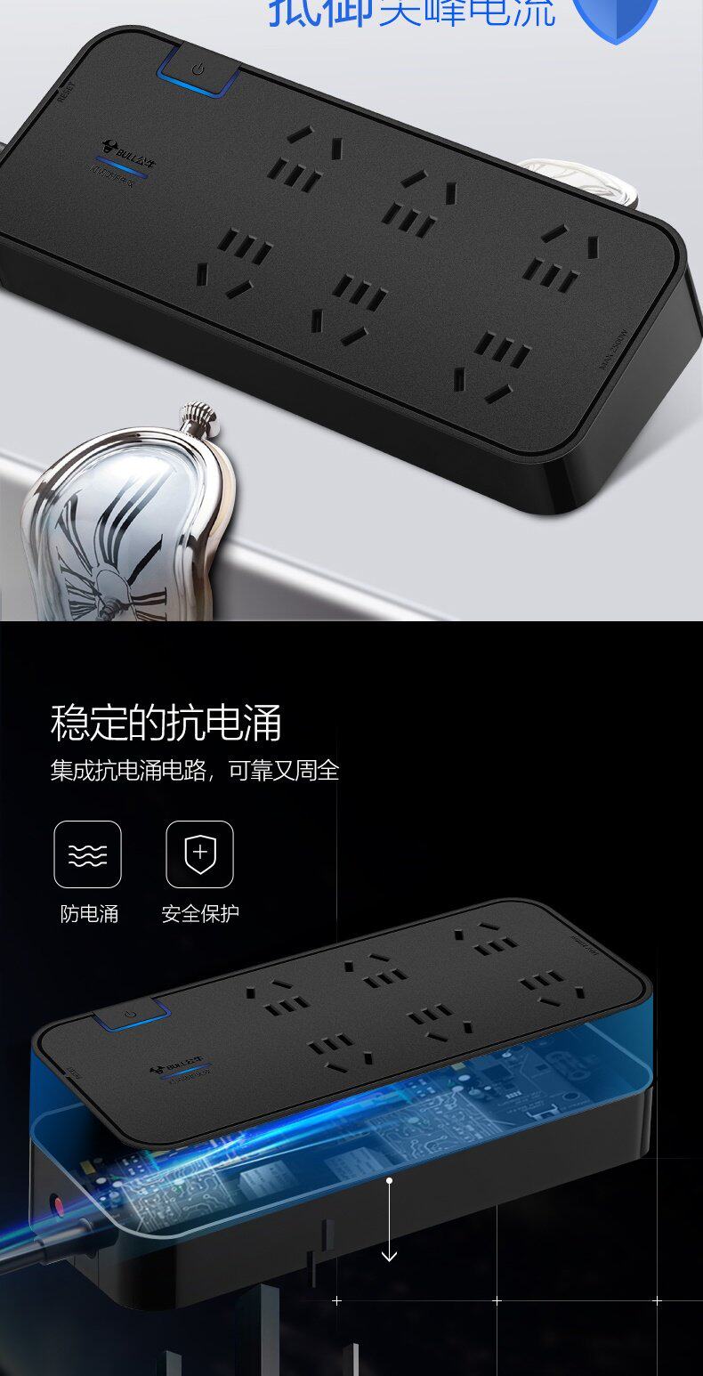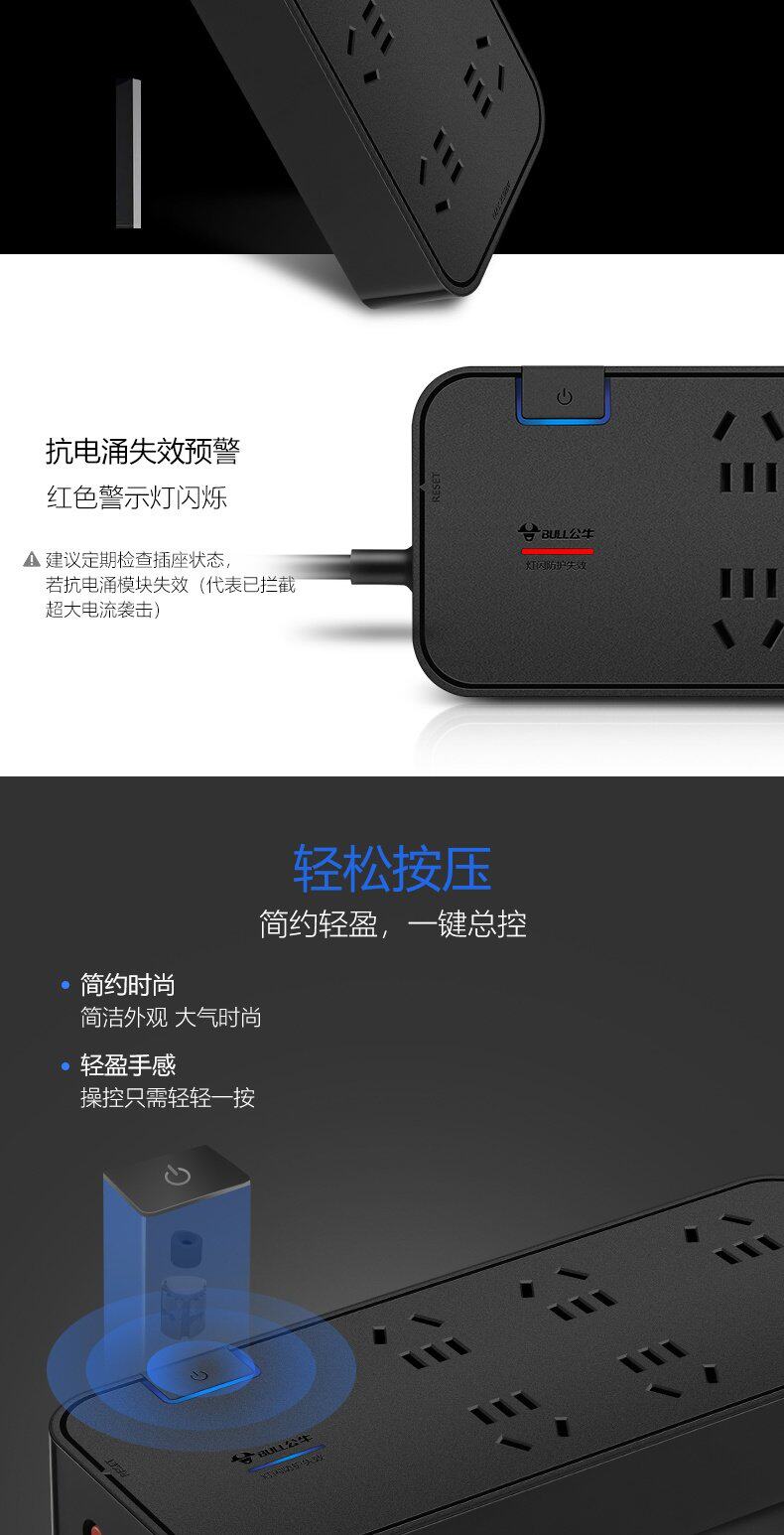 淘宝公牛插座抗电涌独立开关过载保护防雷插座USB多功能插排插线板