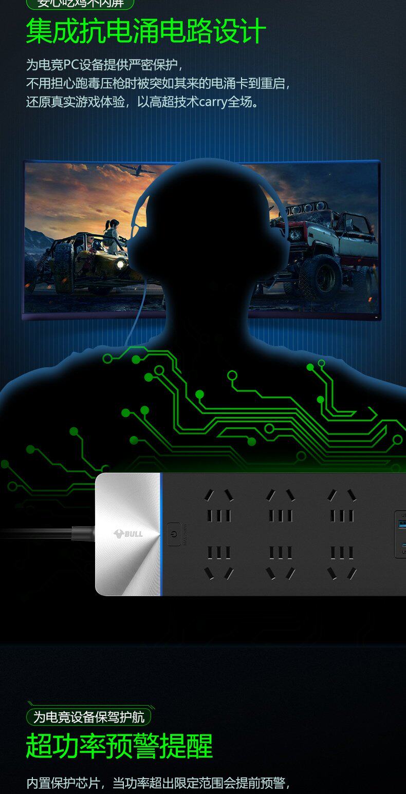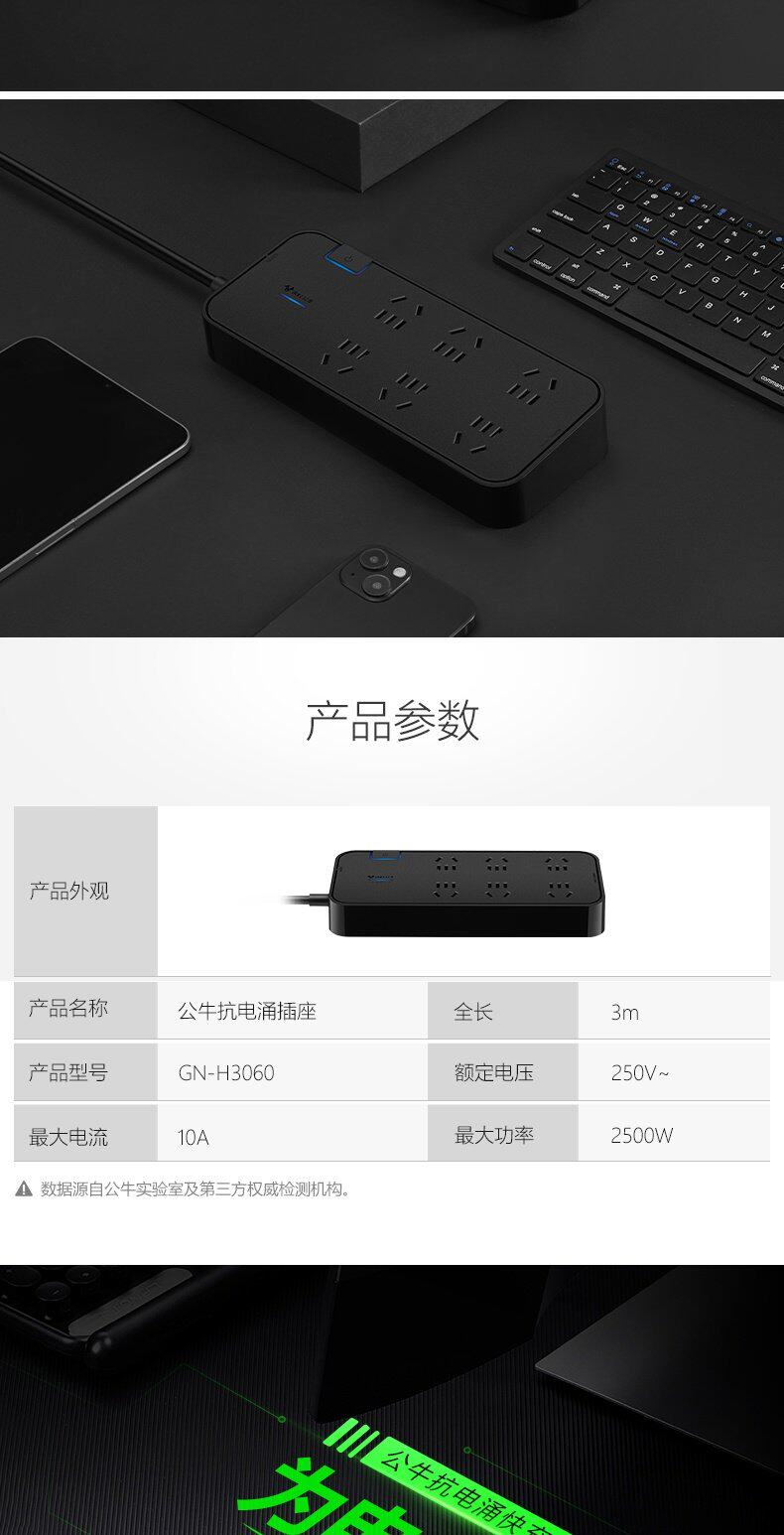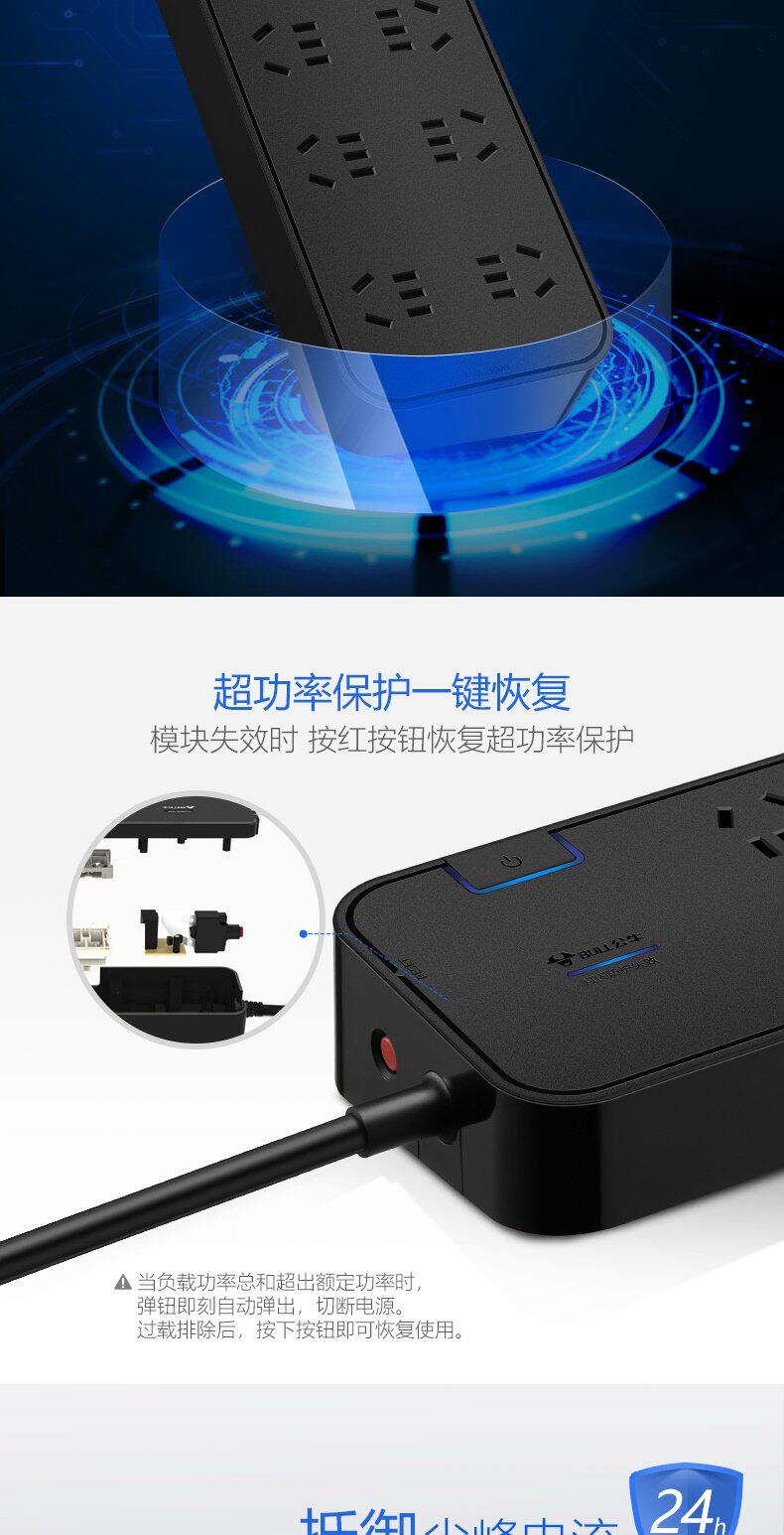 淘宝公牛插座抗电涌独立开关过载保护防雷插座USB多功能插排插线板
