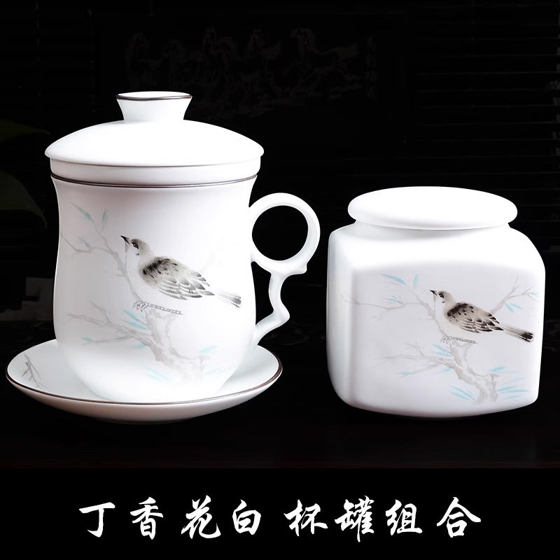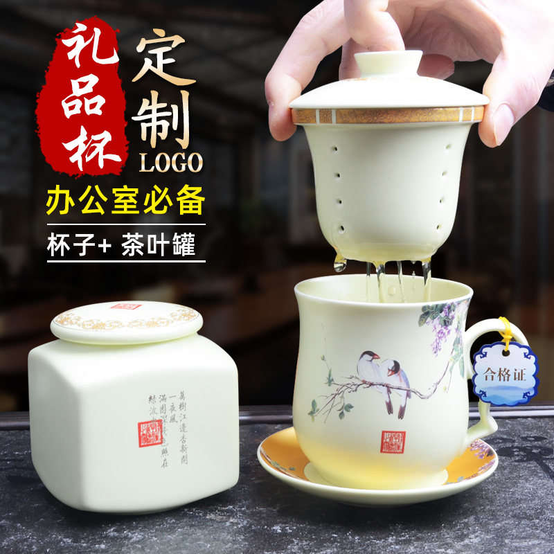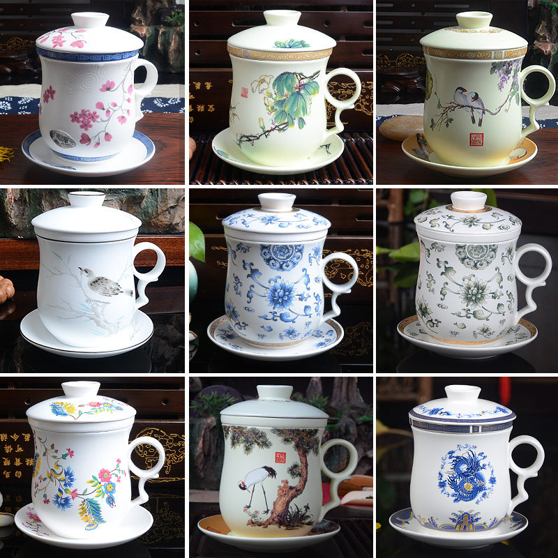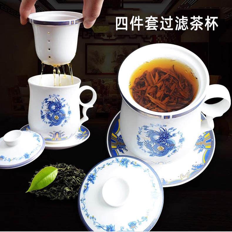 淘宝陶瓷杯办公室茶杯带盖过滤杯四件套会议杯喝茶杯个人老板泡茶杯子
