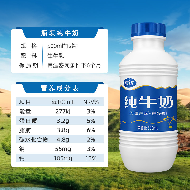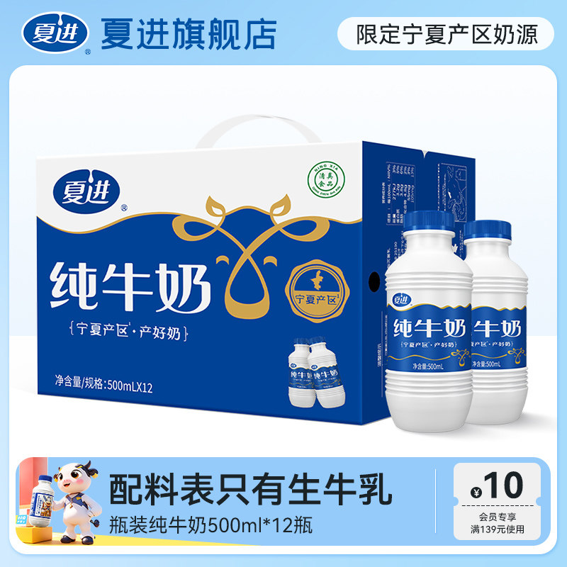 淘宝夏进纯牛奶整箱500ml*12瓶装牛奶早餐大瓶装宁夏牛奶