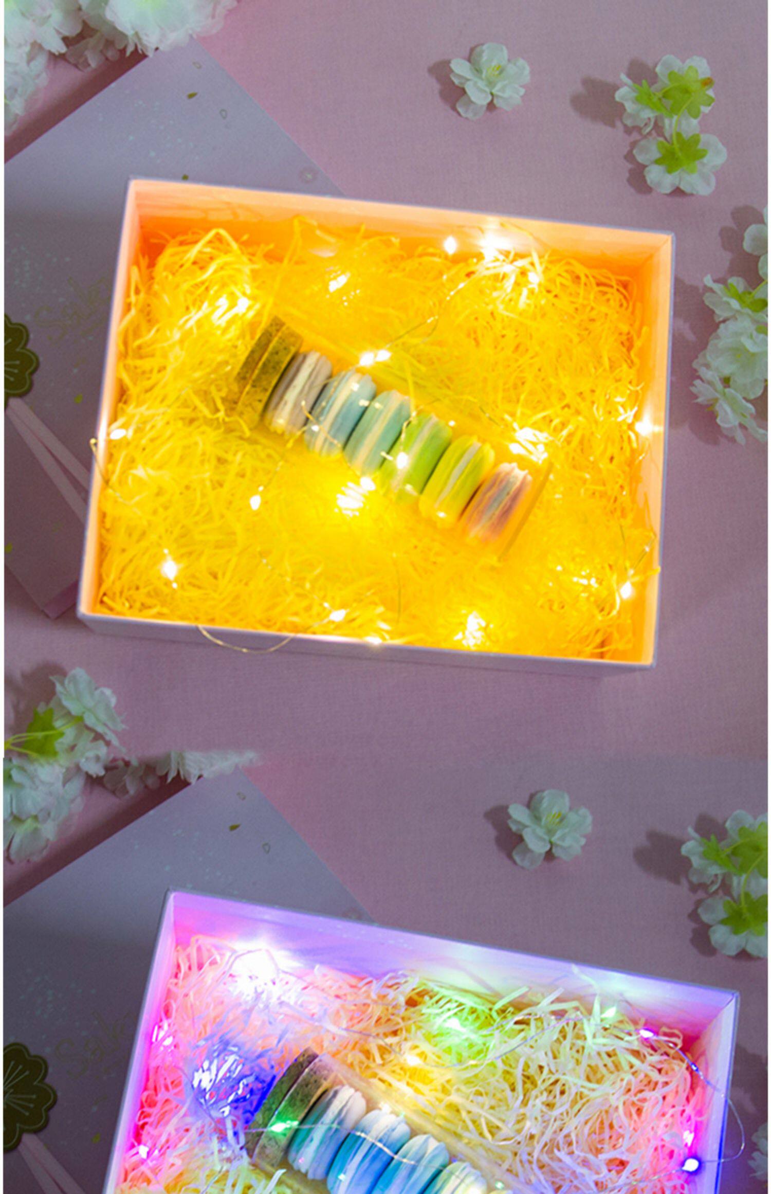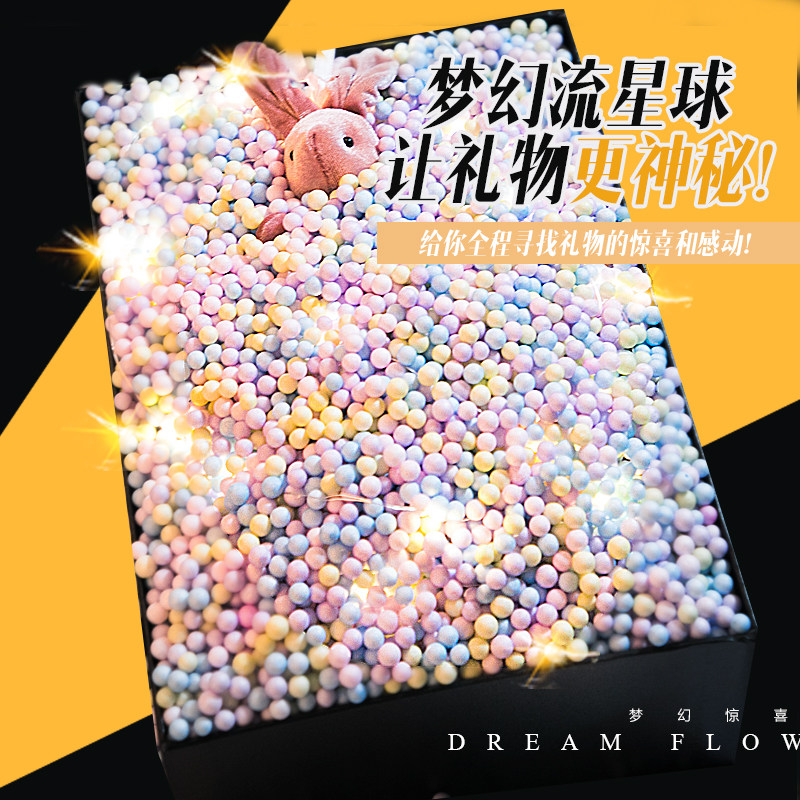 淘宝儿童卡通可爱礼物盒包装拉菲草线礼物盒流星球世家填充物和灯串碎