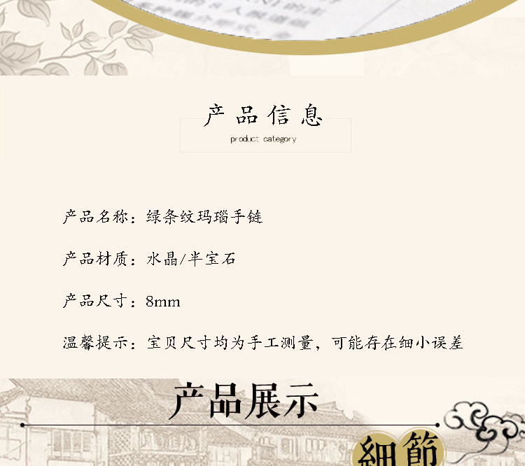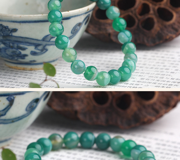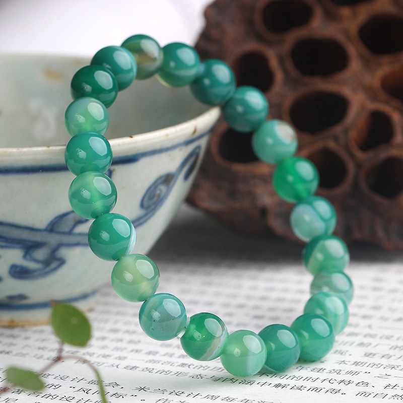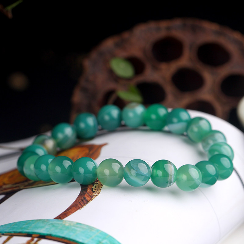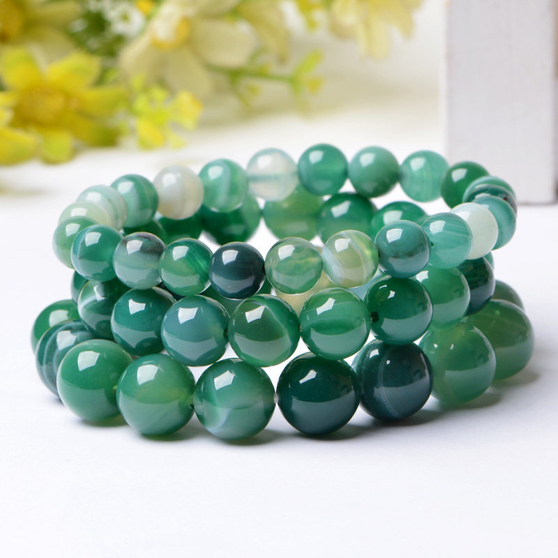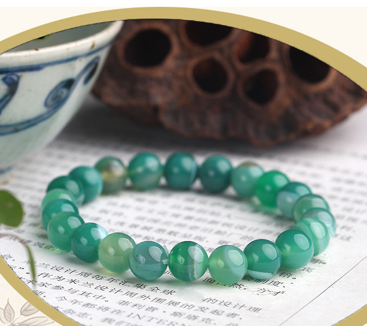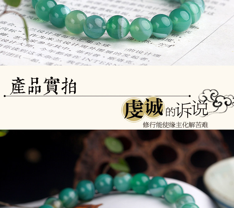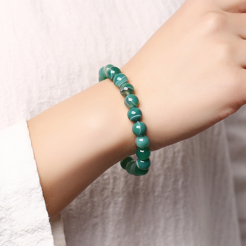 淘宝招财巴西绿玛瑙手链 条纹玛瑙 天然水晶手串 饰品男士女款 礼物