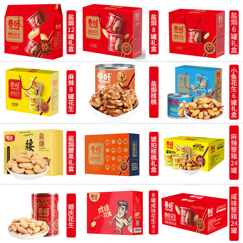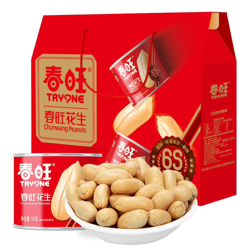淘宝春旺罐装花生米淮盐焗腰果仁零食出口坚果礼包山东特产大花生礼盒