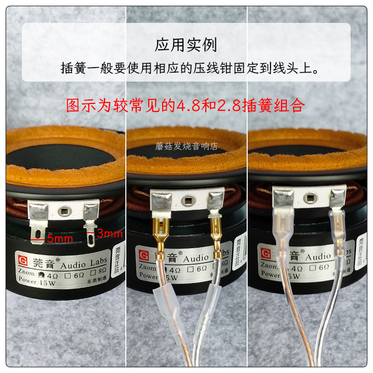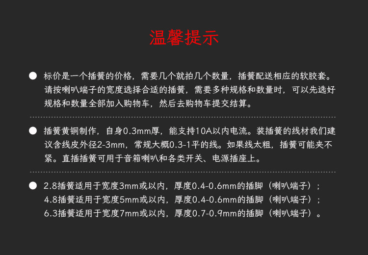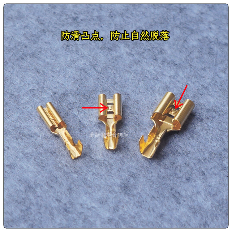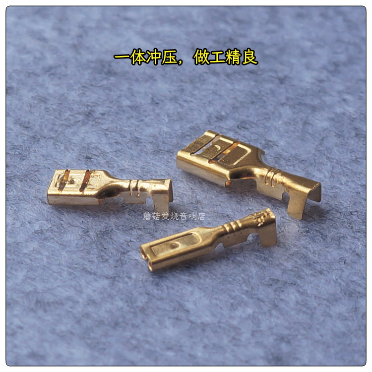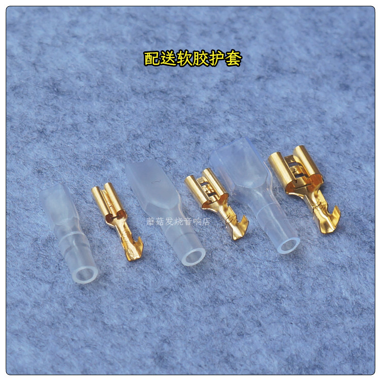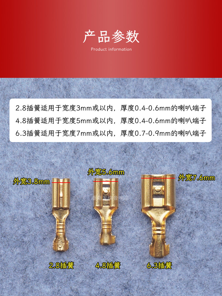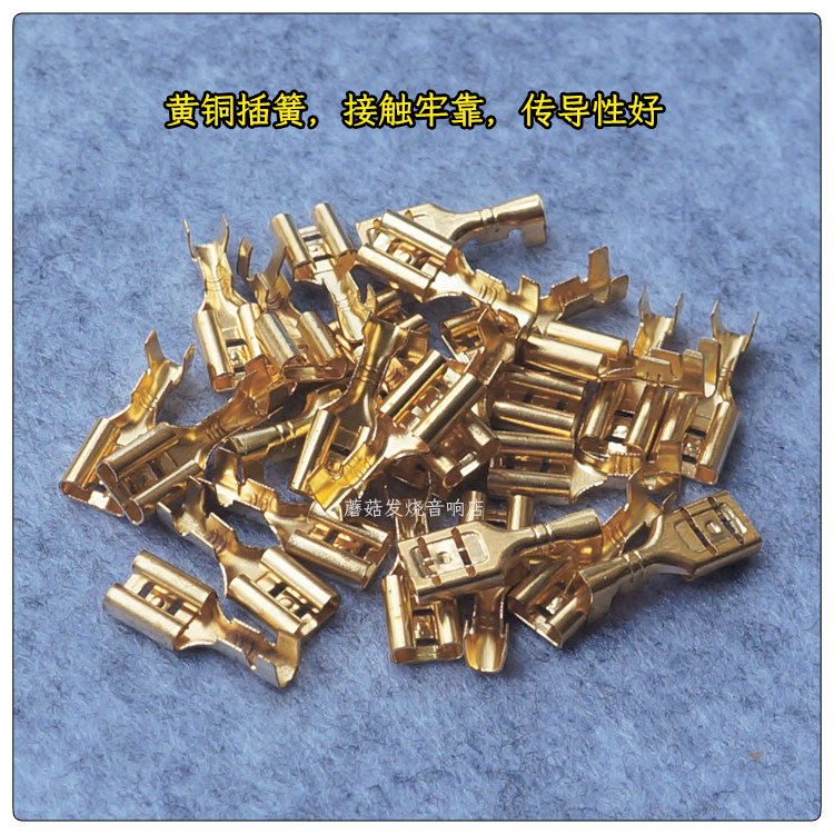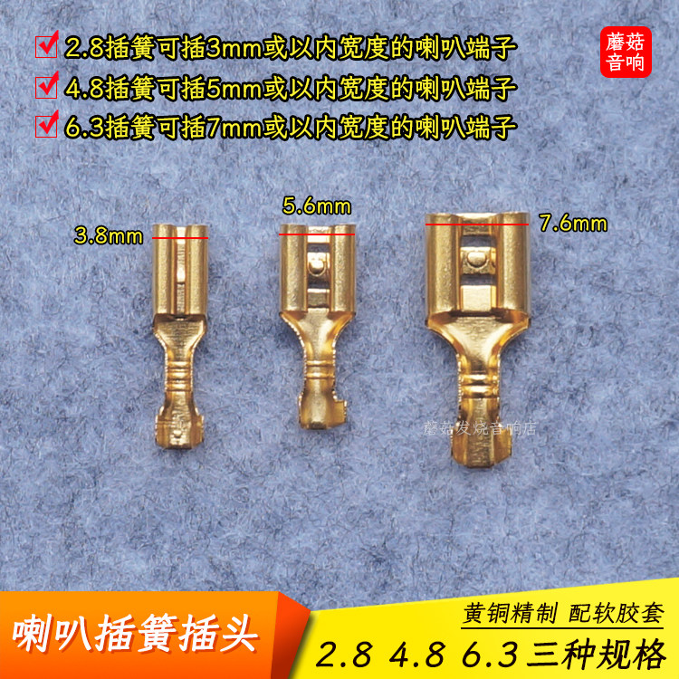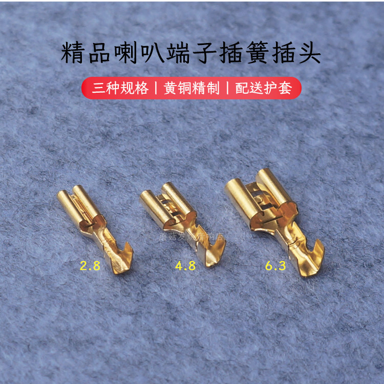 淘宝喇叭端子插簧开关电源插座插头母卡头黄铜免焊送胶套2.8/4.8/6.3