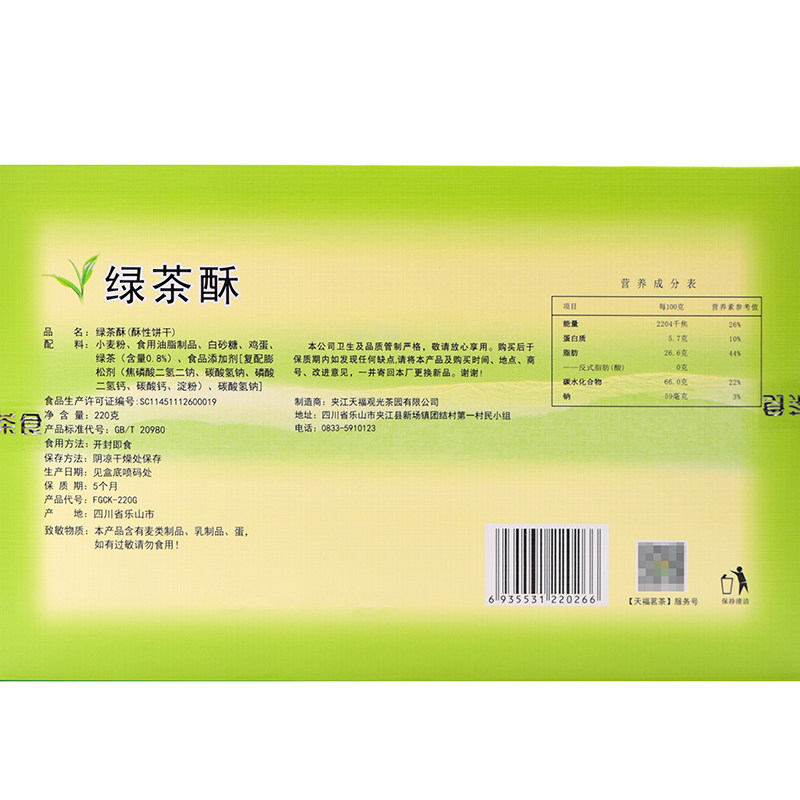 淘宝天福茗茶 绿茶酥220G香甜酥脆传统休闲零食饼干茶点美味茶食品