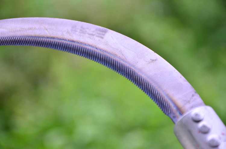 刀头为65号钢经淬火回火热处理,硬度不软不脆.刀齿尖而锋利能锯断铁丝而齿不卷不钝.柄为铁柄,使用舒适,美观大方