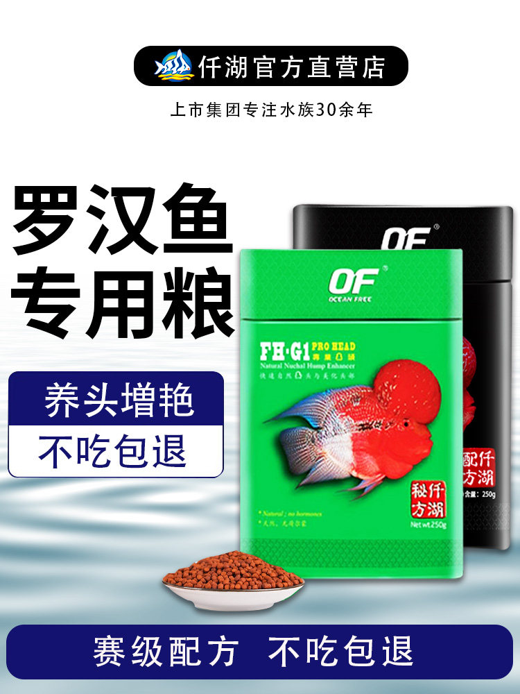 淘宝仟湖OF傲FH-G1深罗汉鱼凸头增色专用饲料起头爆寿星头粮食红瑞神