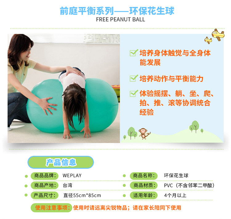 淘宝台湾WEPLAY进口幼儿园感统器材塑料儿童运动平衡玩具花生瑜伽球