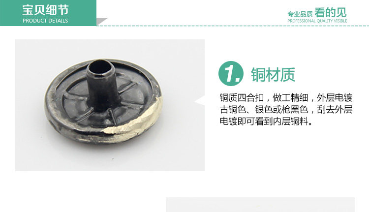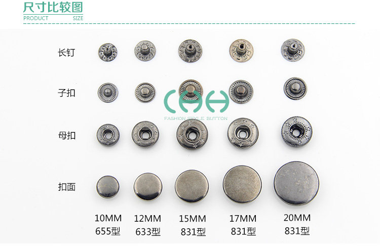 淘宝子母扣纯铜四合扣子金属按扣633/655/831外套扣羽绒服纽扣暗扣