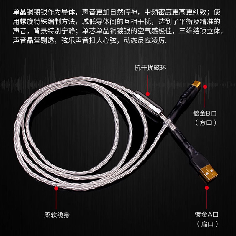 淘宝台湾杨阳/YYAUDIO USB声卡解码器DAC数据线 发烧级USB线 A-B 方口