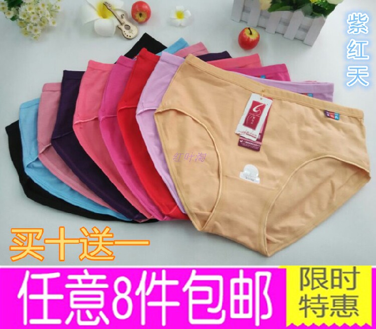 淘宝正品紫红天5070纯棉中腰女内裤纯色大码三角裤中老年女士红色底裤